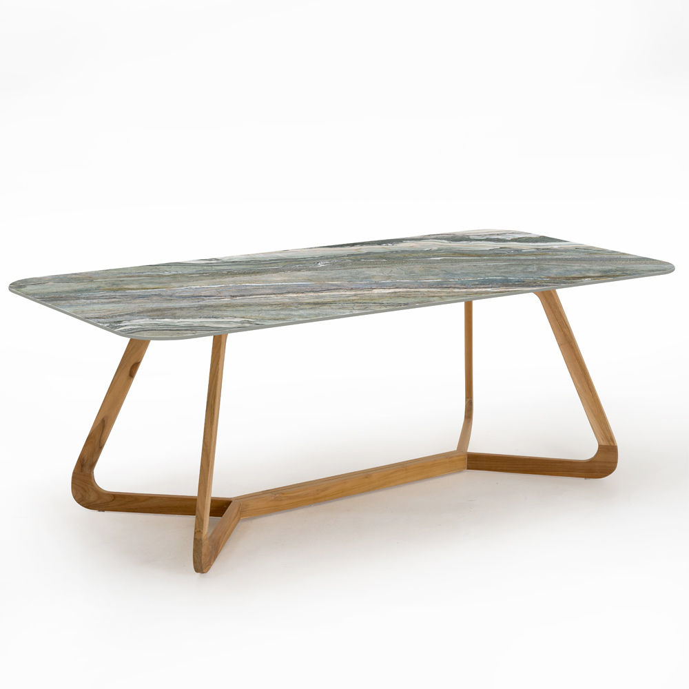 Mesa de jardín rectangular de madera y cerámica, Made in Italy