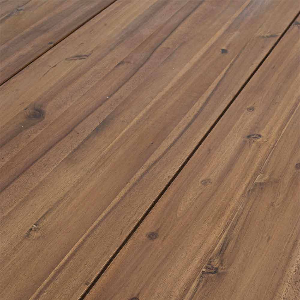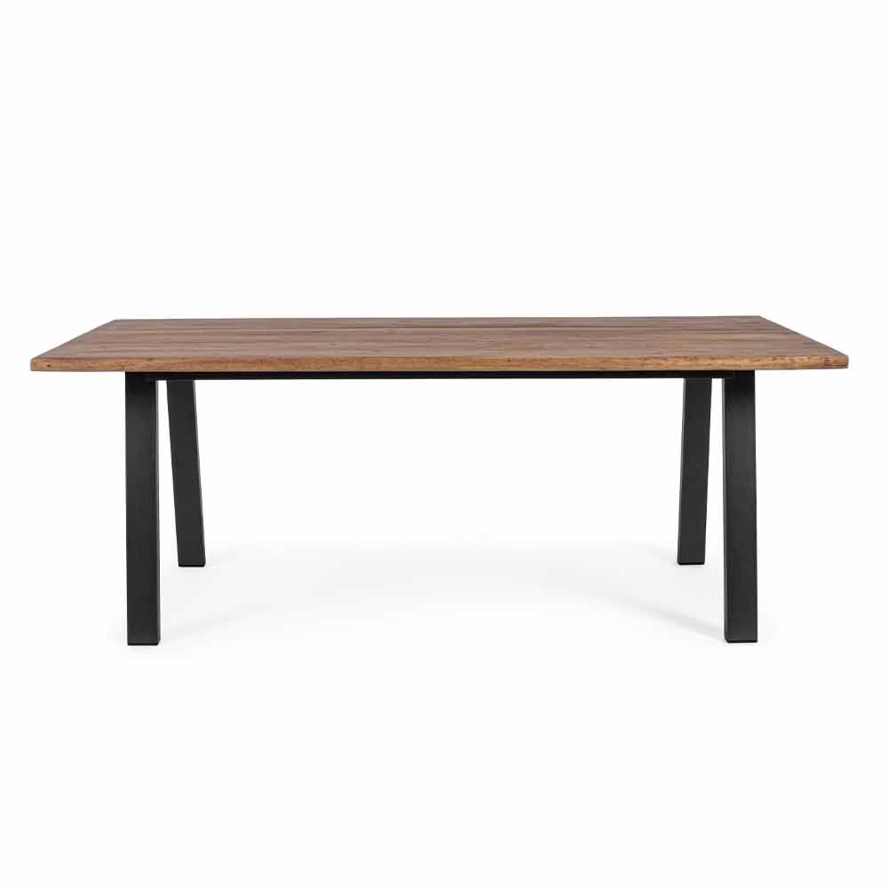 Mesa de comedor exterior en madera de acacia y acero galvanizado.