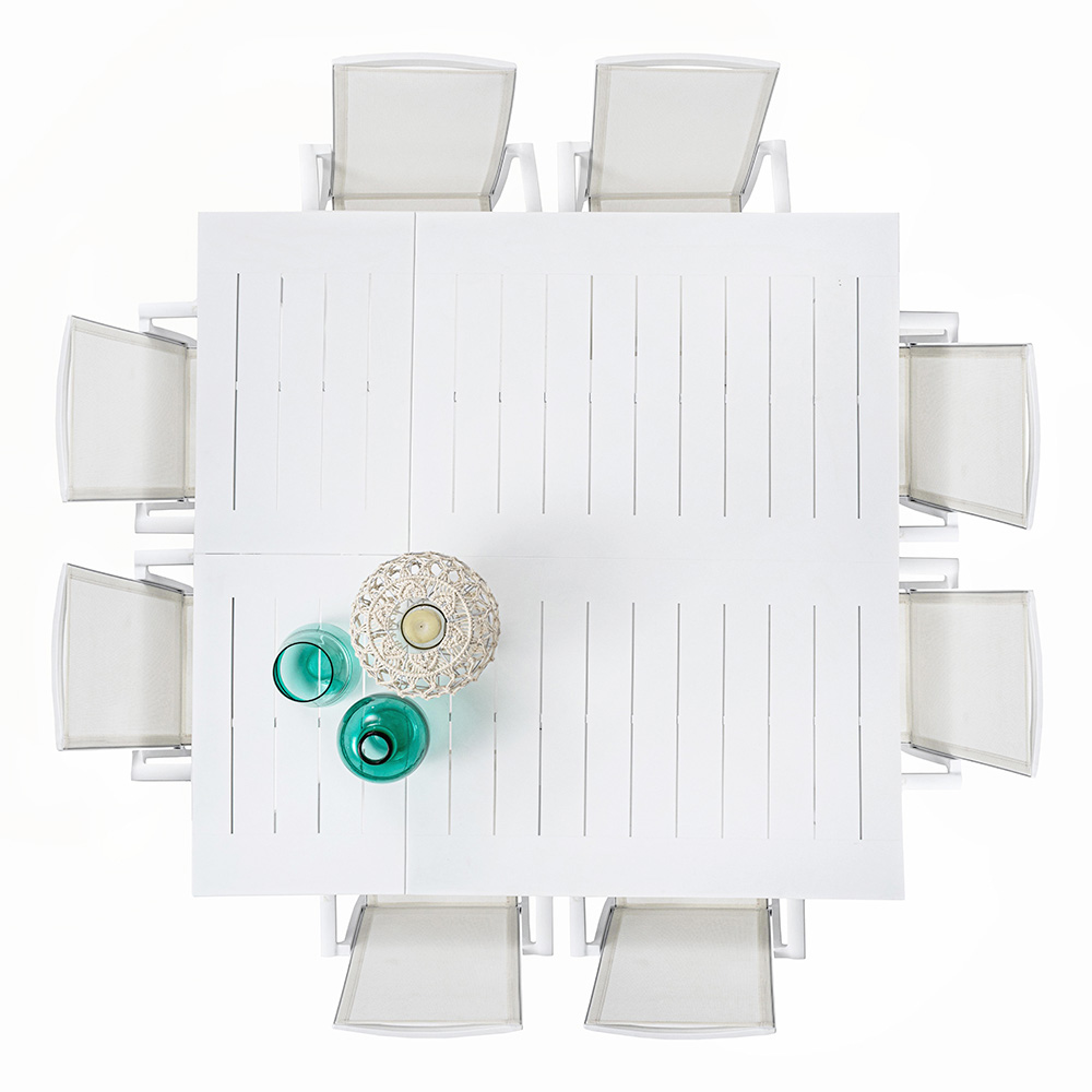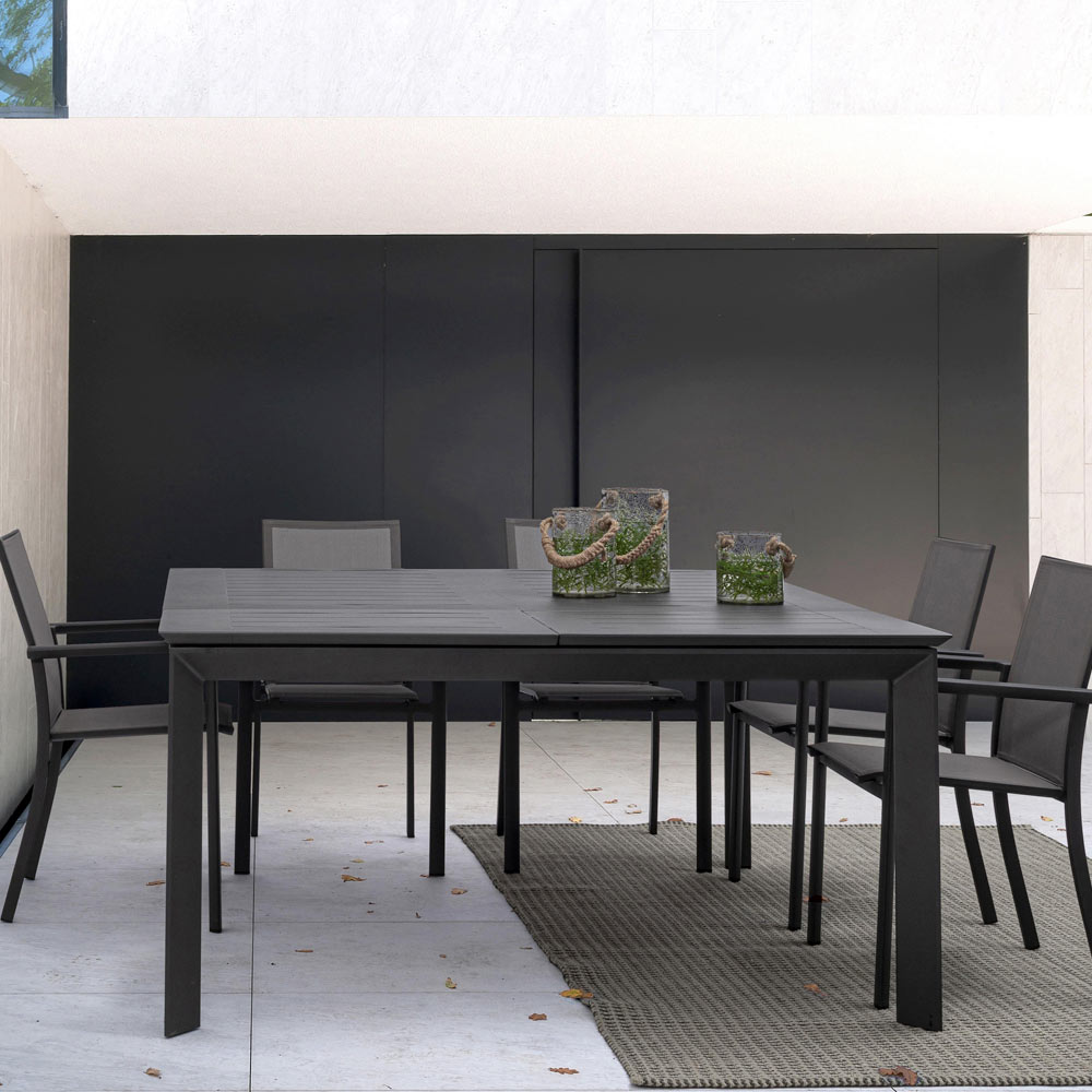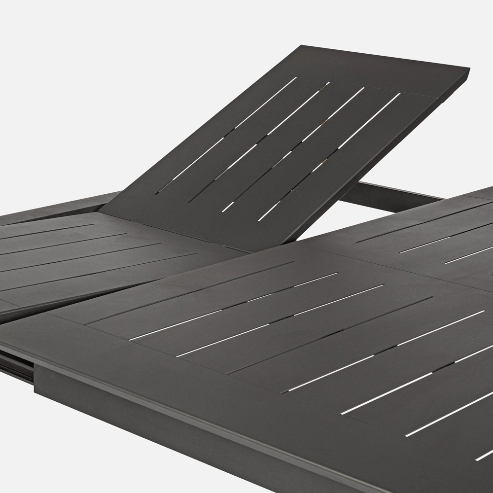 Mesa de comedor de exterior extensible en aluminio pintado de alta calidad.