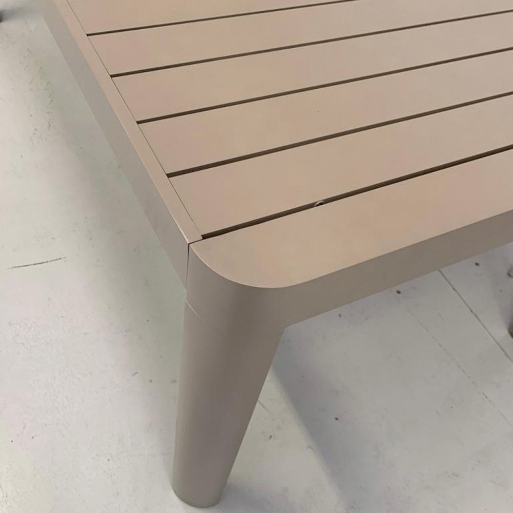 Esta mesa extensible de aluminio es un ejemplo de diseño elegante y funcional perfecto para exteriores. Sus acabados y líneas limpias evocan una sensación de modernidad y amplitud, ofreciendo una superficie acogedora para cualquier ocasión, desde comidas familiares hasta cenas con amigos. La estructura de aluminio no sólo garantiza ligereza visual , sino que también es sinónimo de robustez y resistencia .