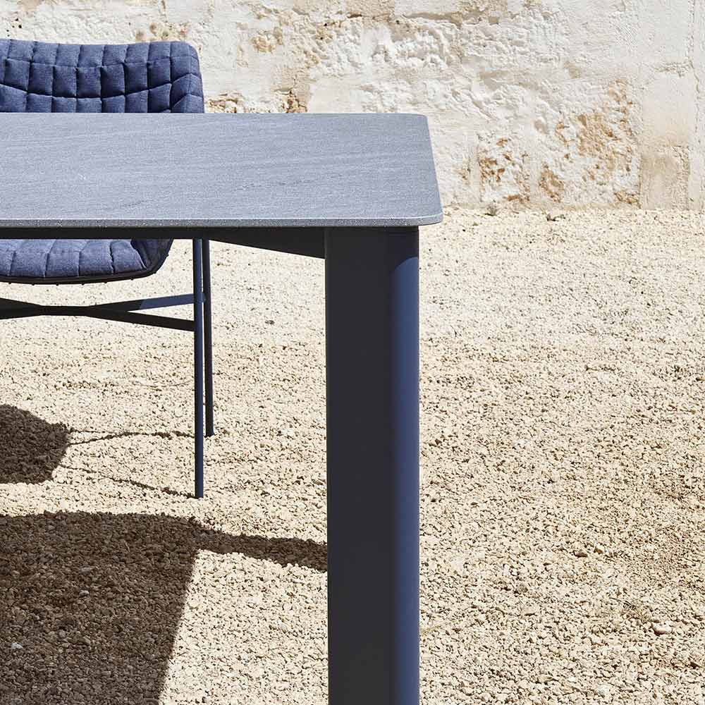 Mesa de jardín de aluminio con tapa de cerámica hpl o abujardada Made in Italy.