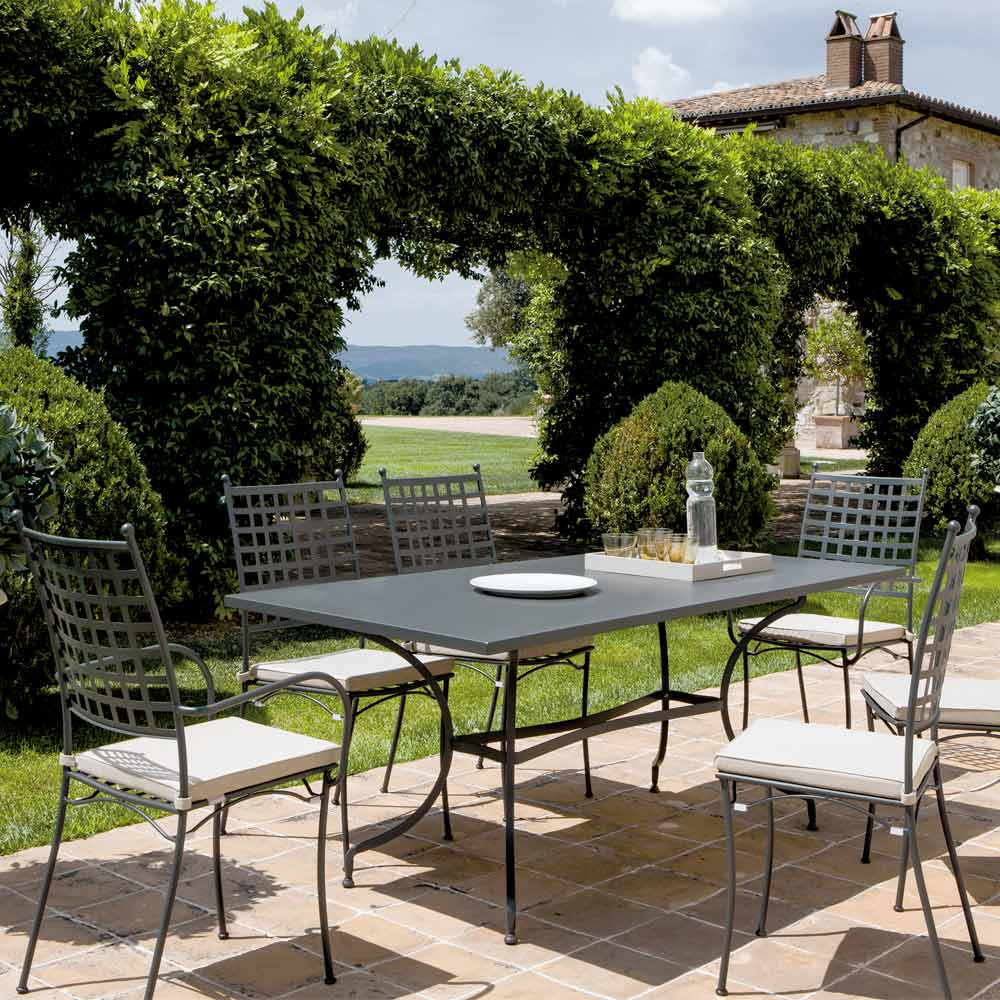 Esta mesa de exterior está diseñada para ser un excelente aliado para almuerzos o cenas al aire libre. De hecho, es extremadamente resistente gracias a la calidad de su material, 100 % fabricado en Italia . Su estructura de acero está reforzada mediante un proceso de galvanizado para resistir la corrosión y los agentes atmosféricos . El estilo atemporal de esta mesa es la máxima expresión de la artesanía italiana, perfecta para dar un toque de clasicismo atemporal a espacios exteriores como terrazas, porches, jardines o piscinas.