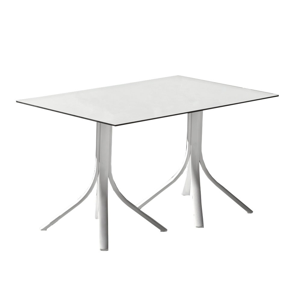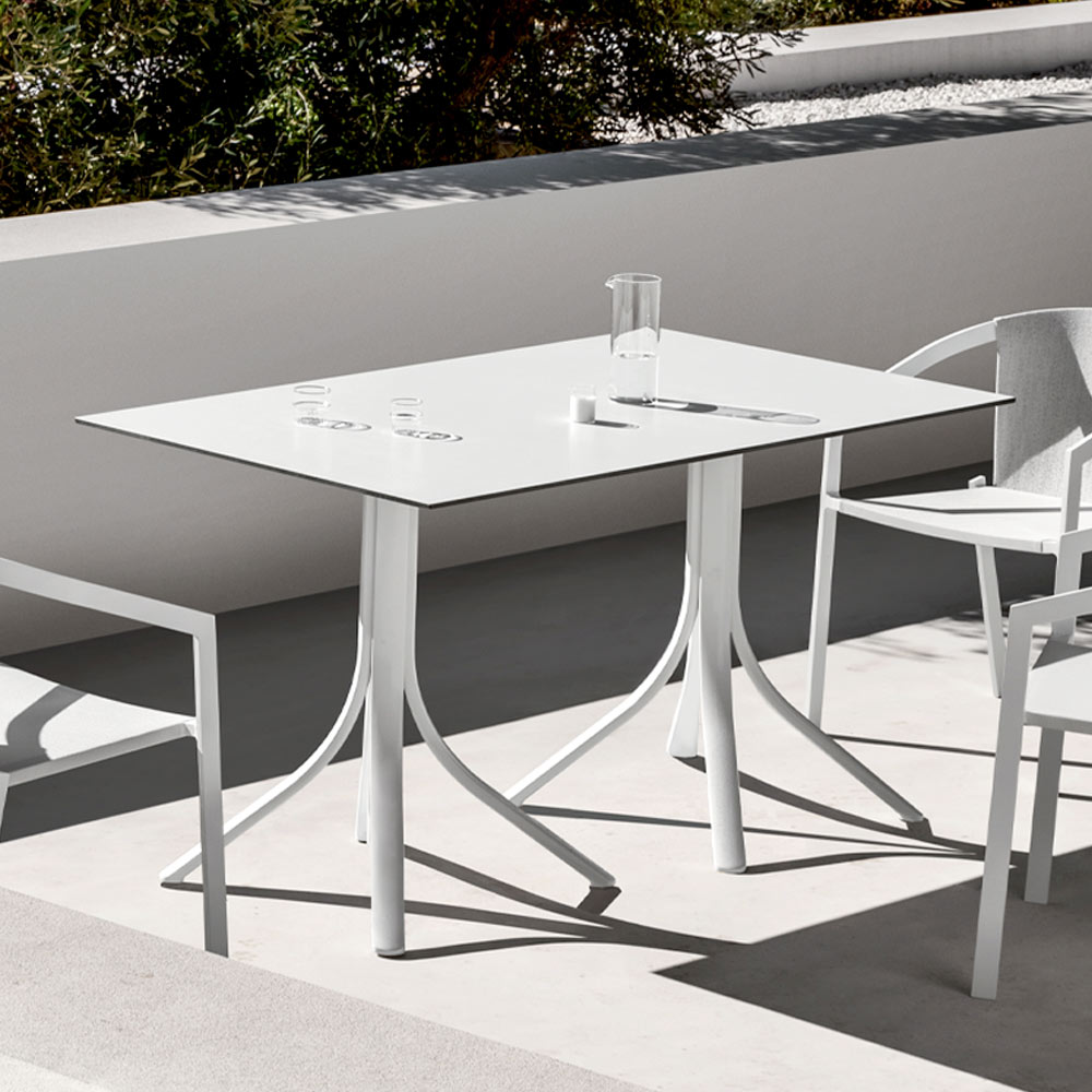 Mesa de exterior con diseño rectangular en aluminio y tapa de hpl en 2 acabados, artículo de alta calidad made in Italy.