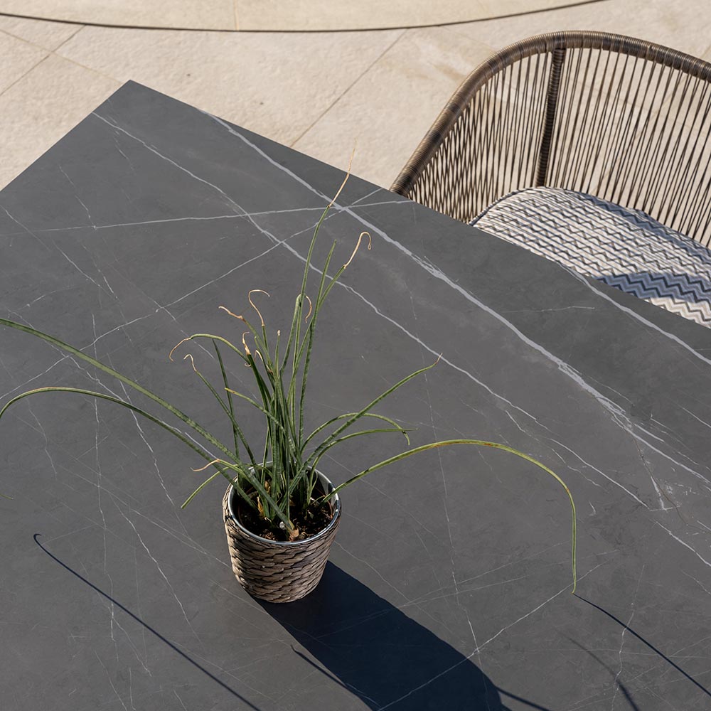 Su diseño moderno y minimalista hacen que esta mesa encaje perfectamente en cualquier ambiente de exterior con diferentes estilos de mobiliario.