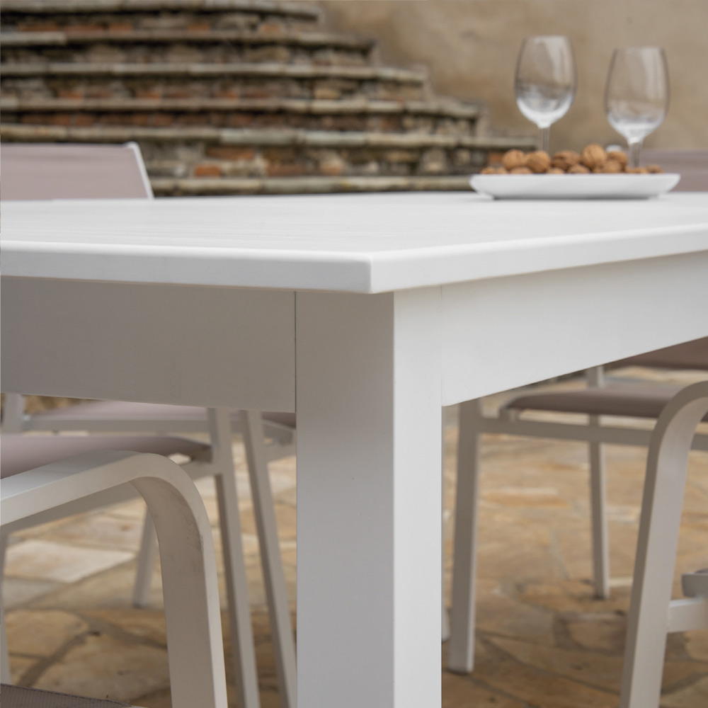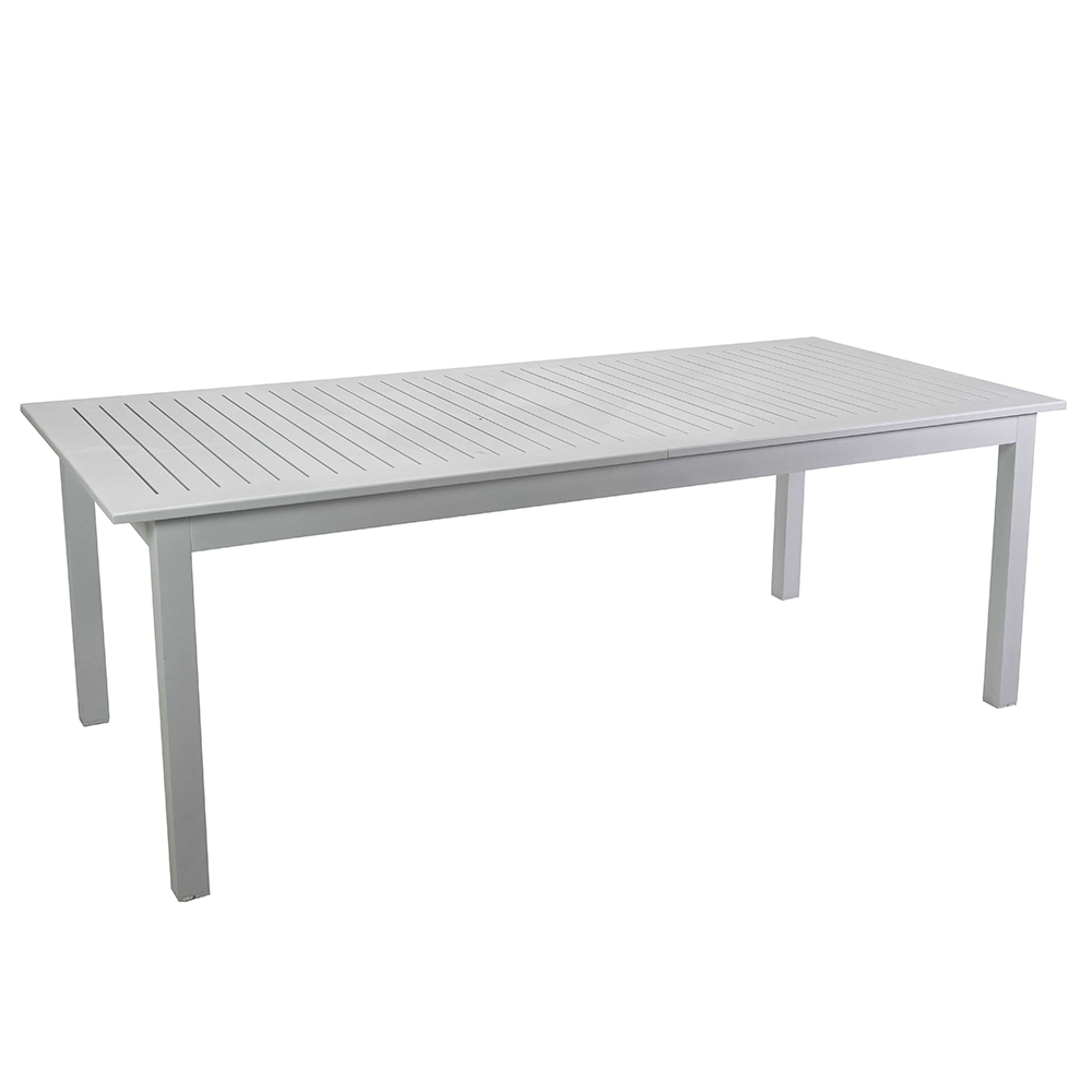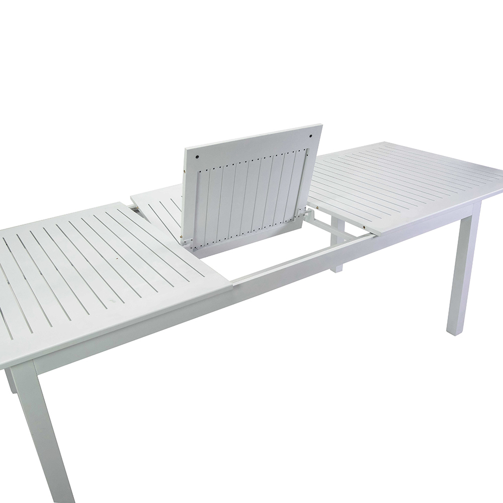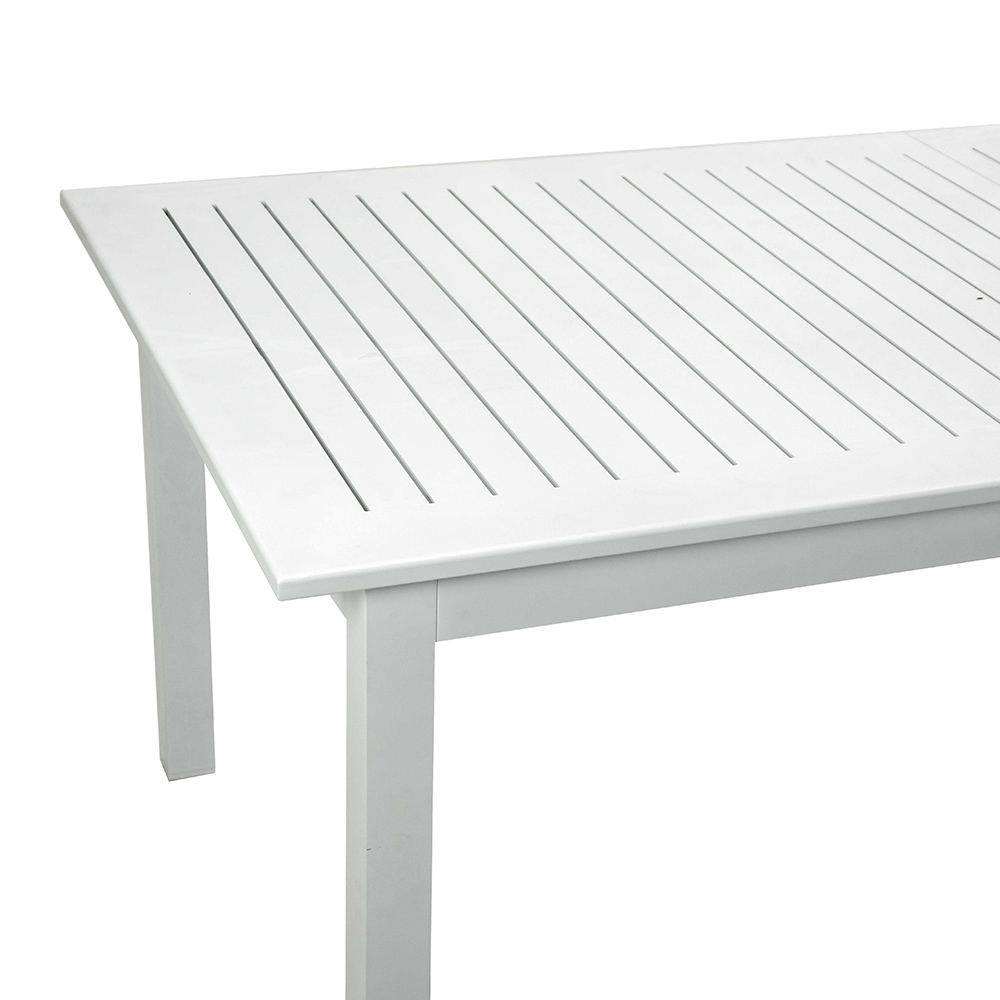 Esta mesa extensible de aluminio es la solución perfecta para acoger tanto pequeñas reuniones familiares como grandes celebraciones al aire libre. Su marco de aluminio garantiza durabilidad y estabilidad , resistiendo los elementos sin esfuerzo. Con un diseño elegante y limpio, encaja perfectamente en cualquier entorno exterior, desde un patio moderno hasta un jardín más clásico.