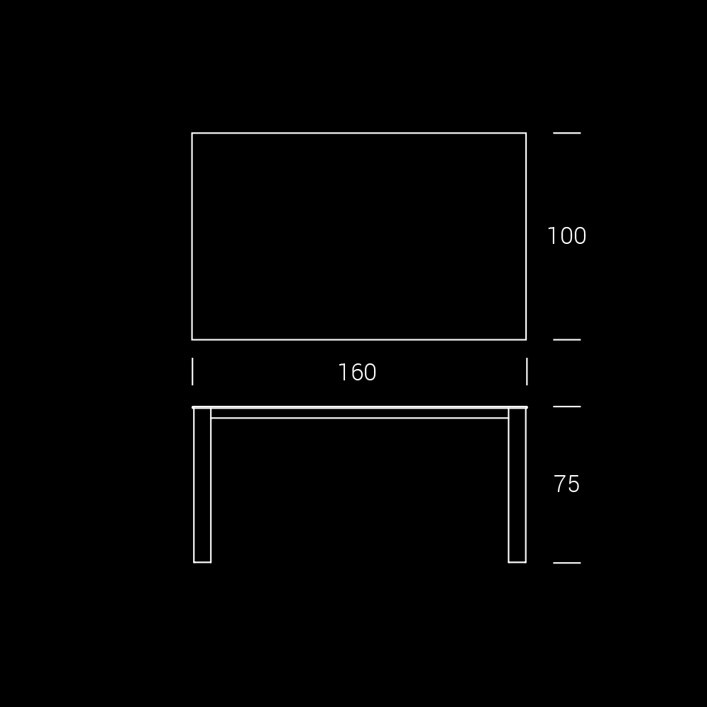 Ancho 160 x Fondo 100 x Alto 75 cm;