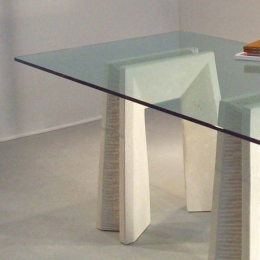 Mesa de piedra de Vicenza y cristal esculpida a mano Arianna