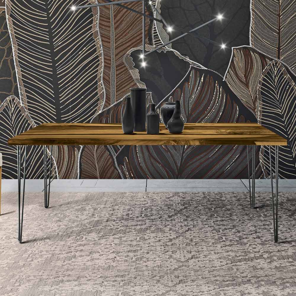 Mesa de comedor compuesta por cuatro patas de hierro y tapa rectangular de roble y resina epoxi coloreada. Un complemento de estilo minimalistapero increíblemente moderno , diseñado para amueblar cualquier espacio vital de forma esencial. Con una tapa con acabado de roble anudado revestido de resina y una base de metal de color carbón . El producto forma parte de la nueva línea de productos modernos elaborados respetando la naturaleza. Fabricado en Italia con materiales de excelente calidad.