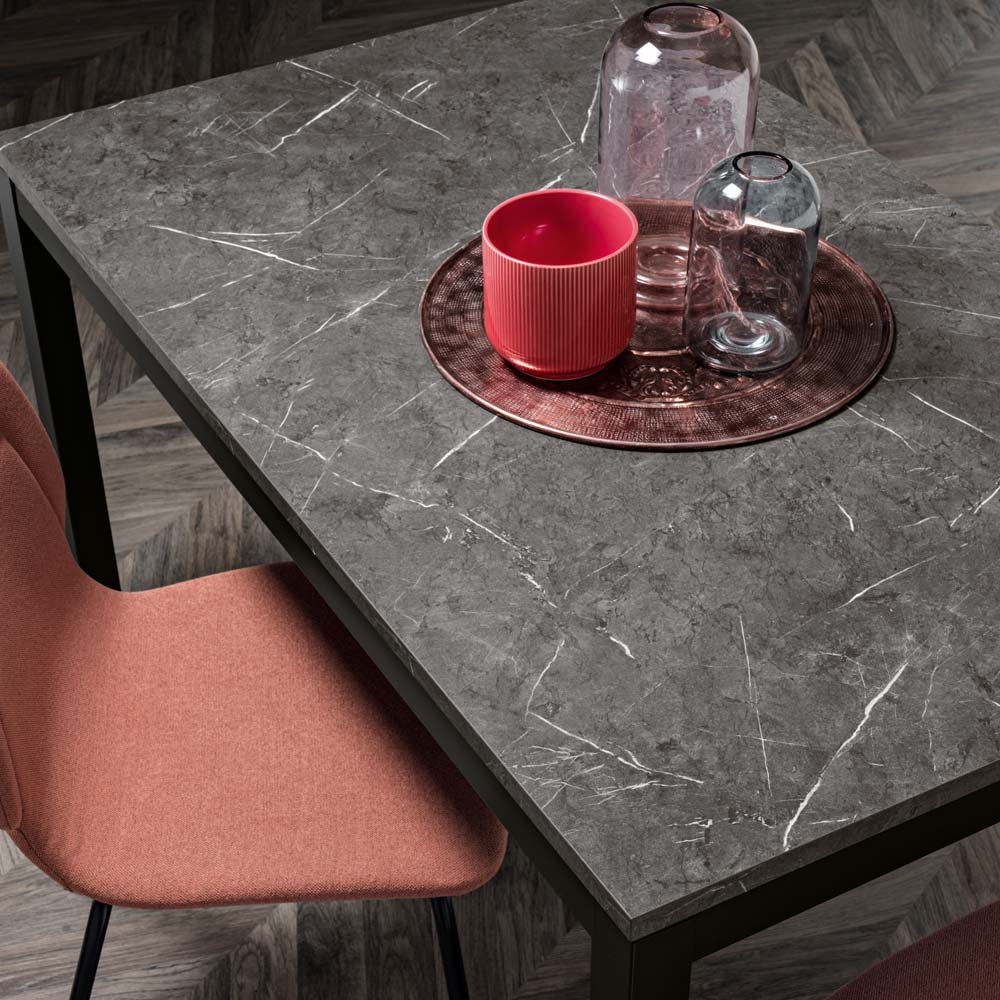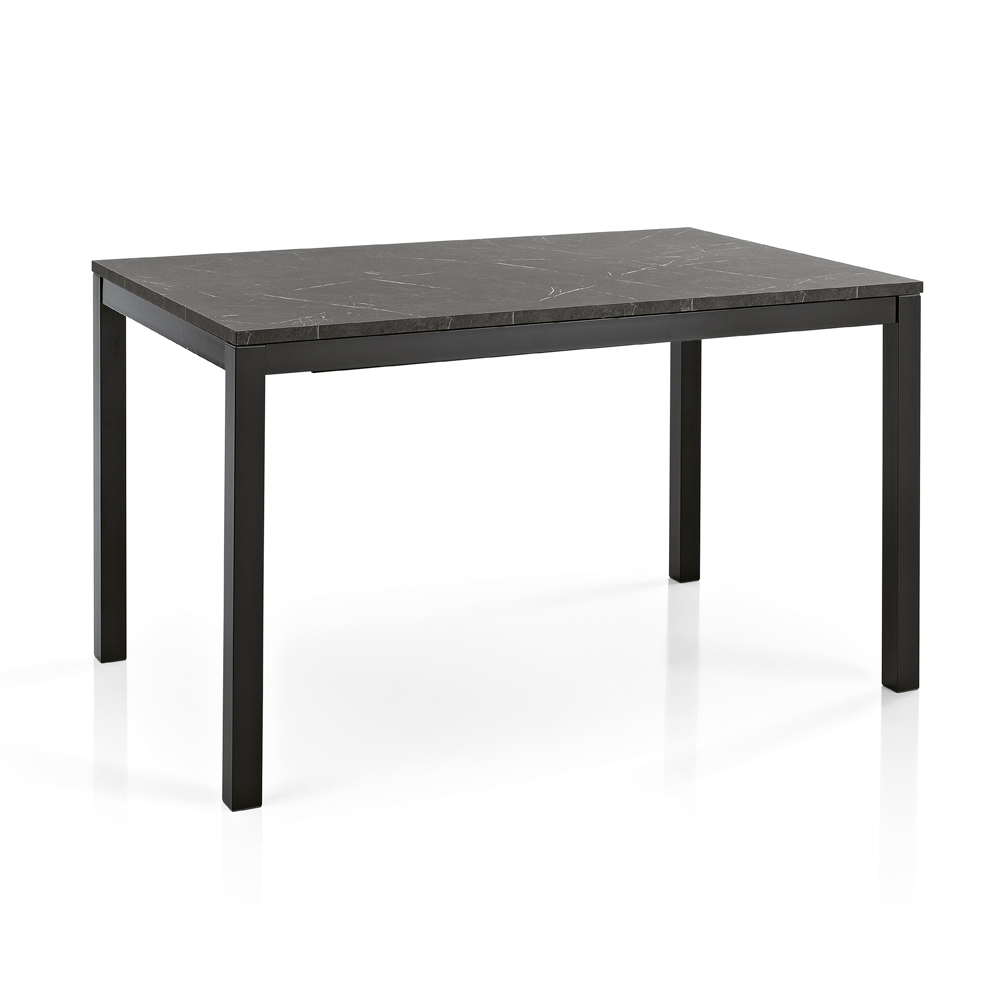 Descubra el encanto contemporáneo y la sofisticación atemporal de esta mesa de comedor . Una majestuosa superficie de melamina sostenida por una robusta estructura con elegantes patas metálicas . Transforma cada comida en una ocasión especial.