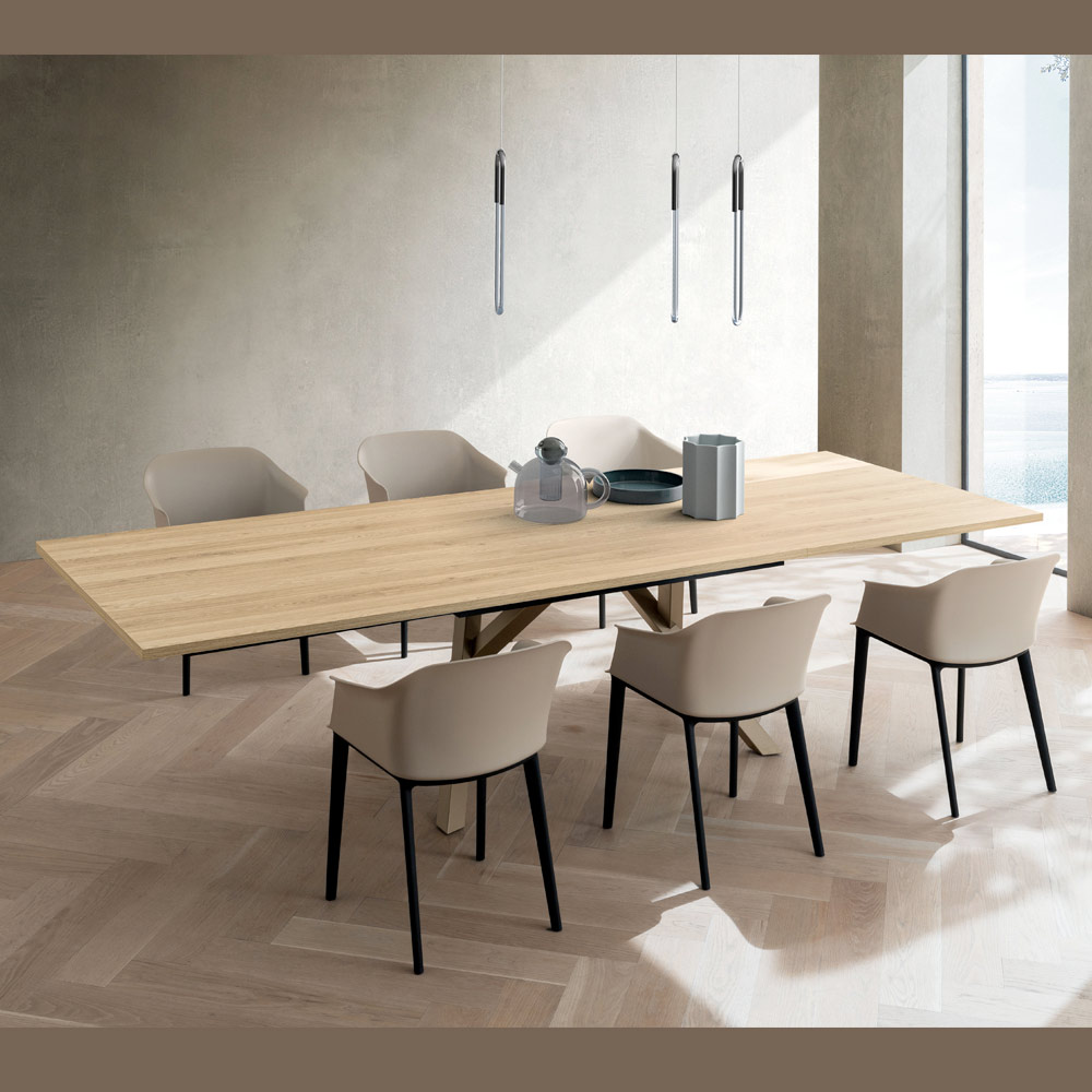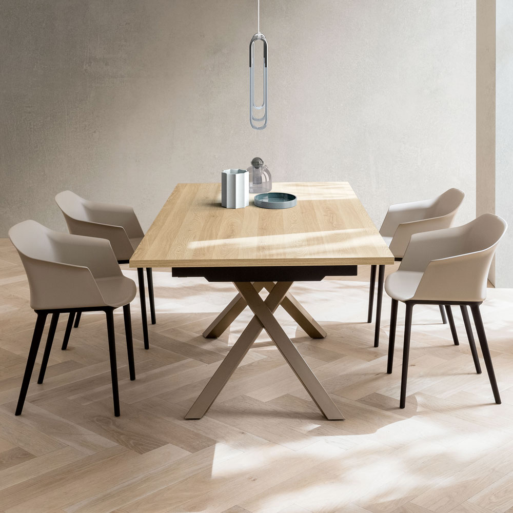 La superficie de HPL es perfecta para el día a día sin sacrificar la estética. Gracias al mecanismo de extensión integrado , la mesa se extiende fácilmente para acomodar cómodamente a más invitados, convirtiéndose en la protagonista perfecta de almuerzos familiares y cenas con amigos.