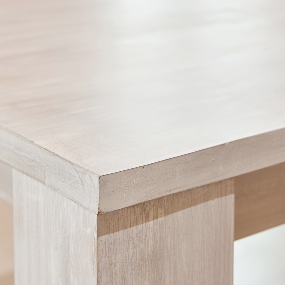 La mesa está hecha a mano con madera secada naturalmente, un material vivo que puede experimentar movimientos naturales con el tiempo. Las pequeñas grietas o desgarros son inherentes a la madera y pueden aparecer incluso con el tiempo.
