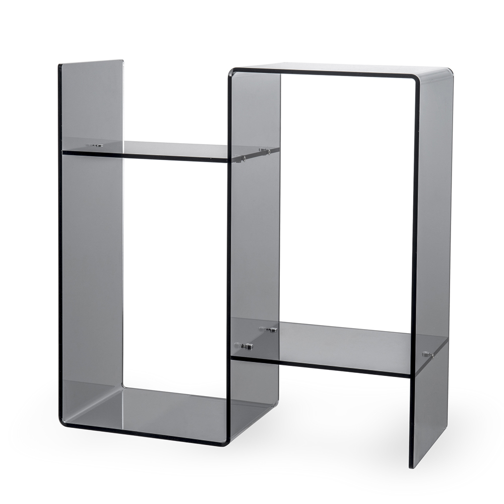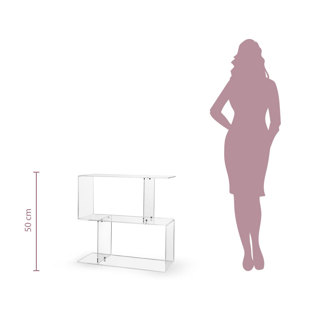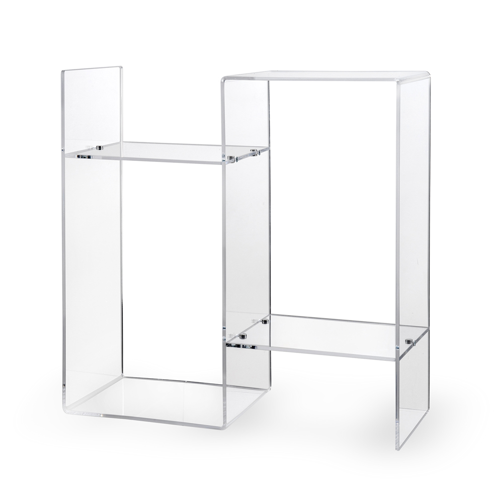 Mesa de centro para el lado del sofá realizada íntegramente en Italia mediante el uso de plexiglás , un material innovador ideal para la producción de complementos de decoración ya que no es tóxico, hipoalergénico, inodoro, antibacteriano y 100 % reciclable. Su diseño discreto y lineal cuenta con doble balda para una mayor funcionalidad y destaca su brillo y brillo que se mantienen constantes e inalterables a lo largo del tiempo.
