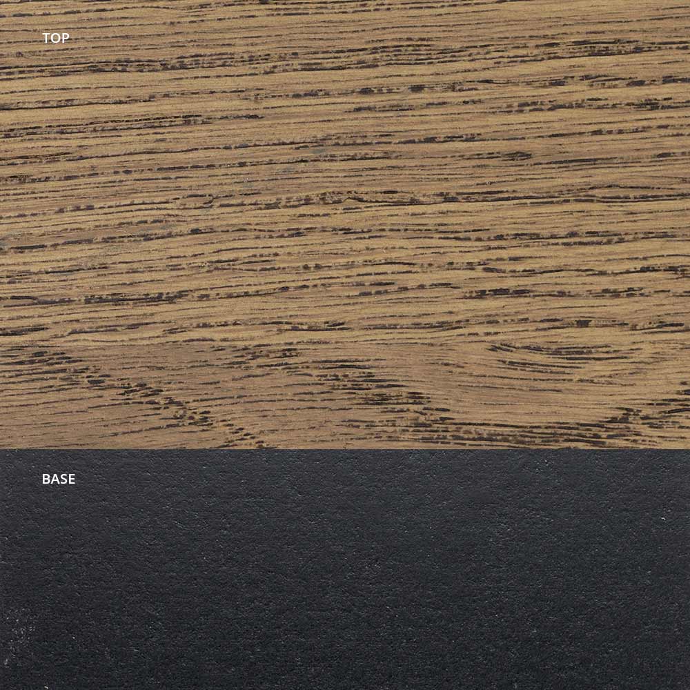 El sobre de esta mesa es de chapa de roble anudado color escocés y su base es de metal negro mate.