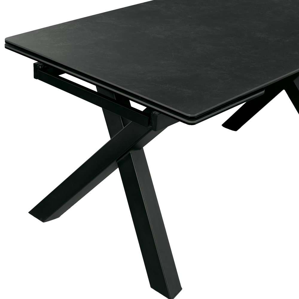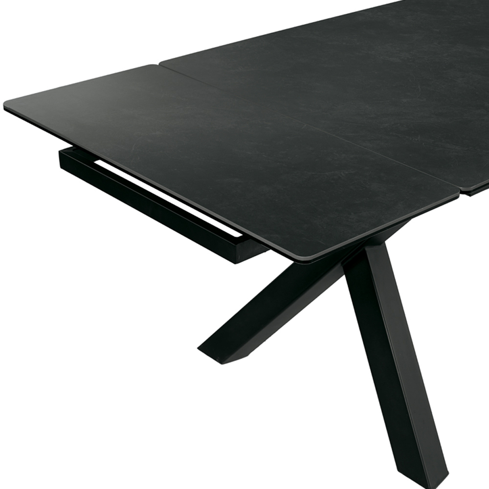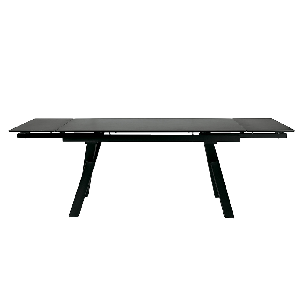 Esta mesa contemporánea está diseñada para realzar el comedor con un estilo elegante y audaz. El tablero de cerámica y vidrio combina estética y funcionalidad, ofreciendo una superficie resistente a rayones, calor y manchas, ideal para el uso diario sin sacrificar la elegancia.