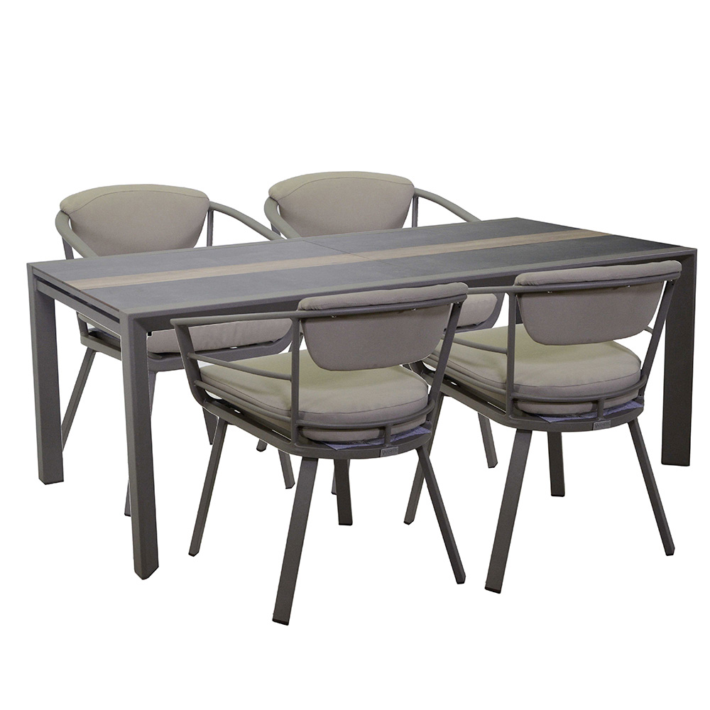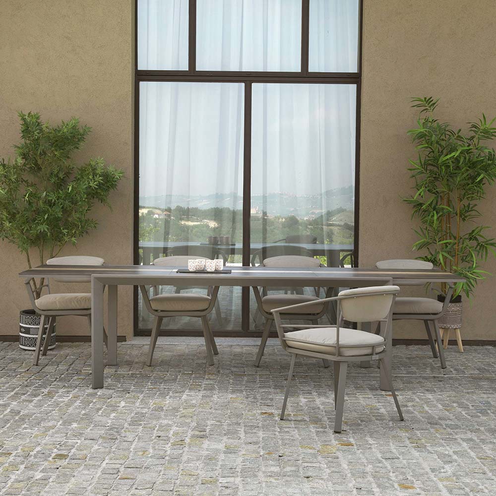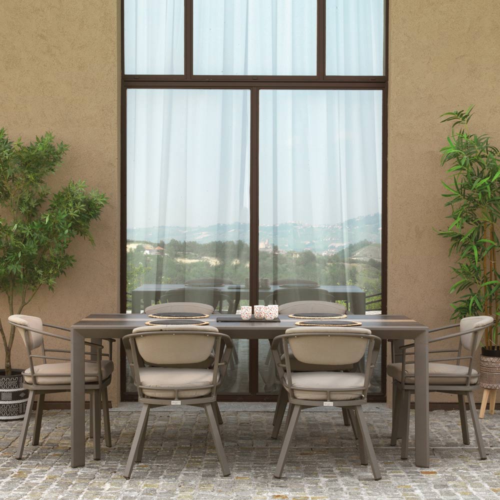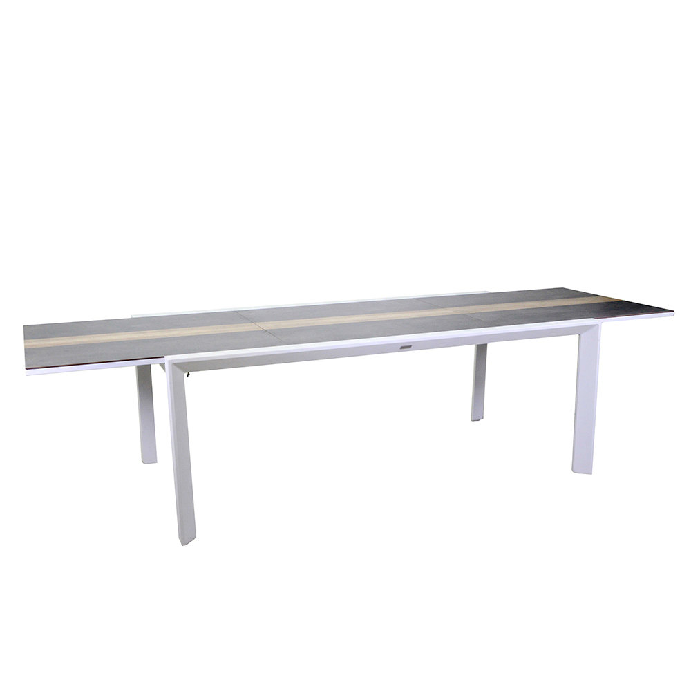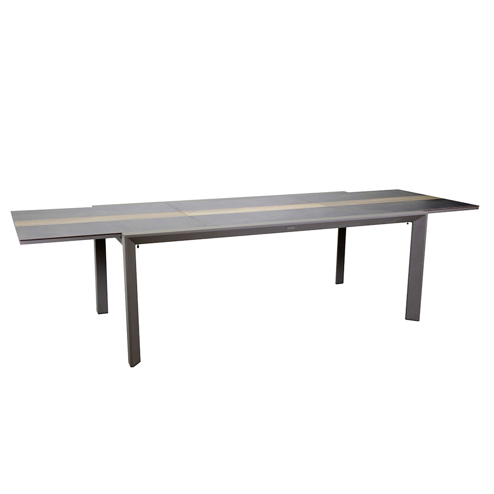 Con una apertura central deslizante , esta mesa ofrece una flexibilidad única, que le permite extenderla fácilmente cuando sea necesario, haciéndola perfecta para recibir a amigos y familiares. La superficie de HPL también es famosa por ser resistente a la intemperie y fácil de limpiar, lo que garantiza una inversión duradera y fácil de mantener.