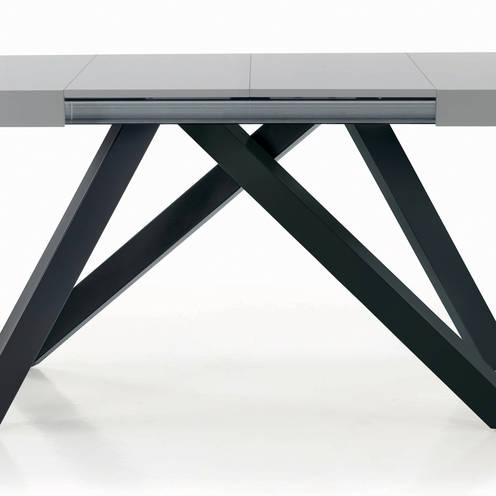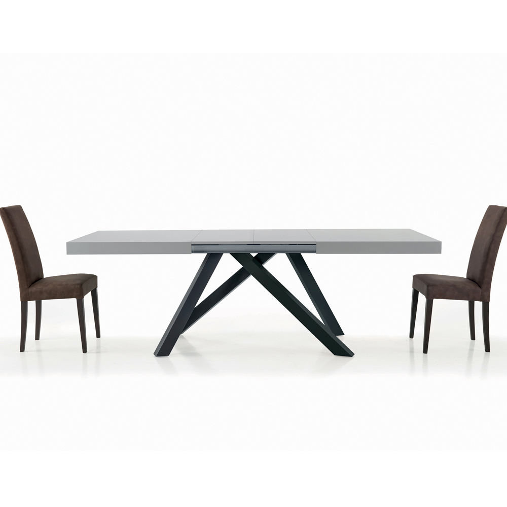 Mesa de salón extensible con apertura central sincronizada (extensiones internas), tapa en laminado blanco mate, borde abatible , base de acero lacado grafito con pies regulables. Estilo moderno y elegancia se encuentran en este producto que completa y hace único cada ambiente doméstico y contract. Gracias a los acabados y materiales elegidos, toda la calidad del Made in Italy está garantizada y un producto no sólo bello sino también funcional y práctico.