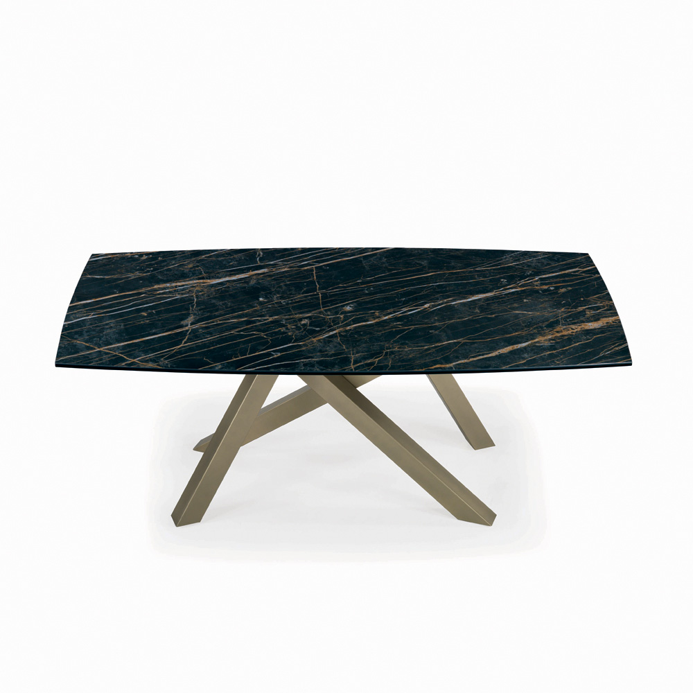 Mesa de salón extensible en forma de barril con extensiones integradas,tapa de cerámica, borde biselado a 45° , base de acero con pies regulables. Estilo moderno y elegancia se encuentran en este producto que completa y hace único cada ambiente doméstico y contract. Gracias a los acabados y materiales elegidos, toda la calidad del Made in Italy está garantizada y un producto no sólo bello sino también funcional y práctico.