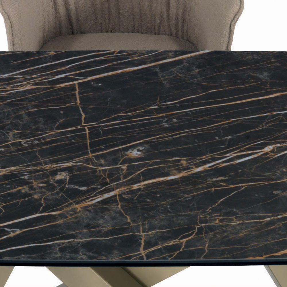 Tapa Desir Noir brillante (vidrio de 10 mm de espesor + cerámica de 5 mm) y base champagne