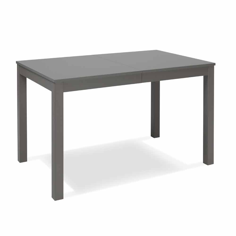 Mesa extensible con patas en madera de haya, L130 / 210xP80cm, Denisio Mesa de comedor extensible con patas en madera maciza de haya en color gris claro. Tablero, bandas y extensiones en melamina gris claro. Las extensiones se insertan en la mesa. Denisio es una mesa extensible hasta 210 cm con dimensiones: l.130 / 210 x p.80 x h.76 cm.
