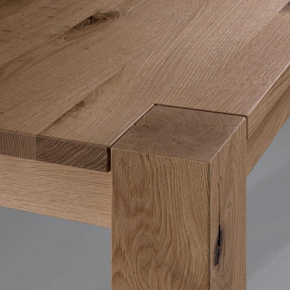 Mesa extensible con patas y tapa chapada en tablero de bloques Made in Italy.