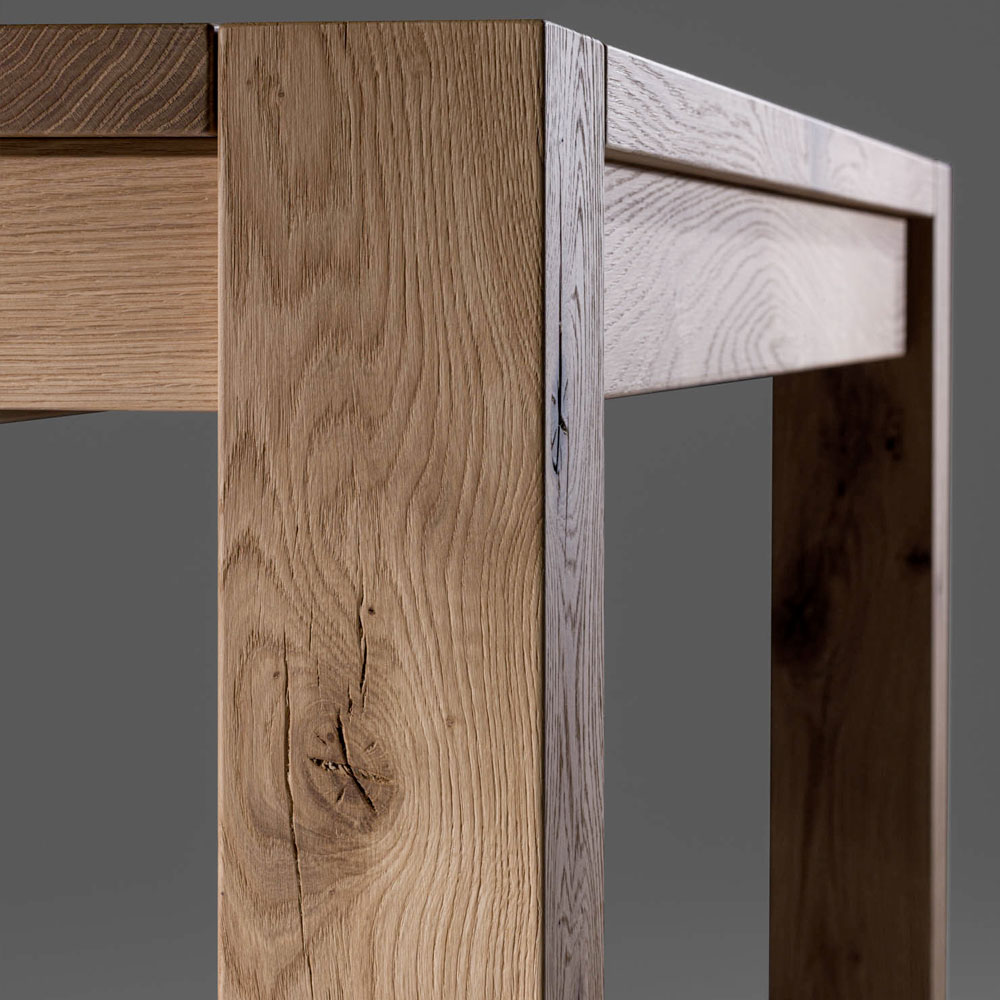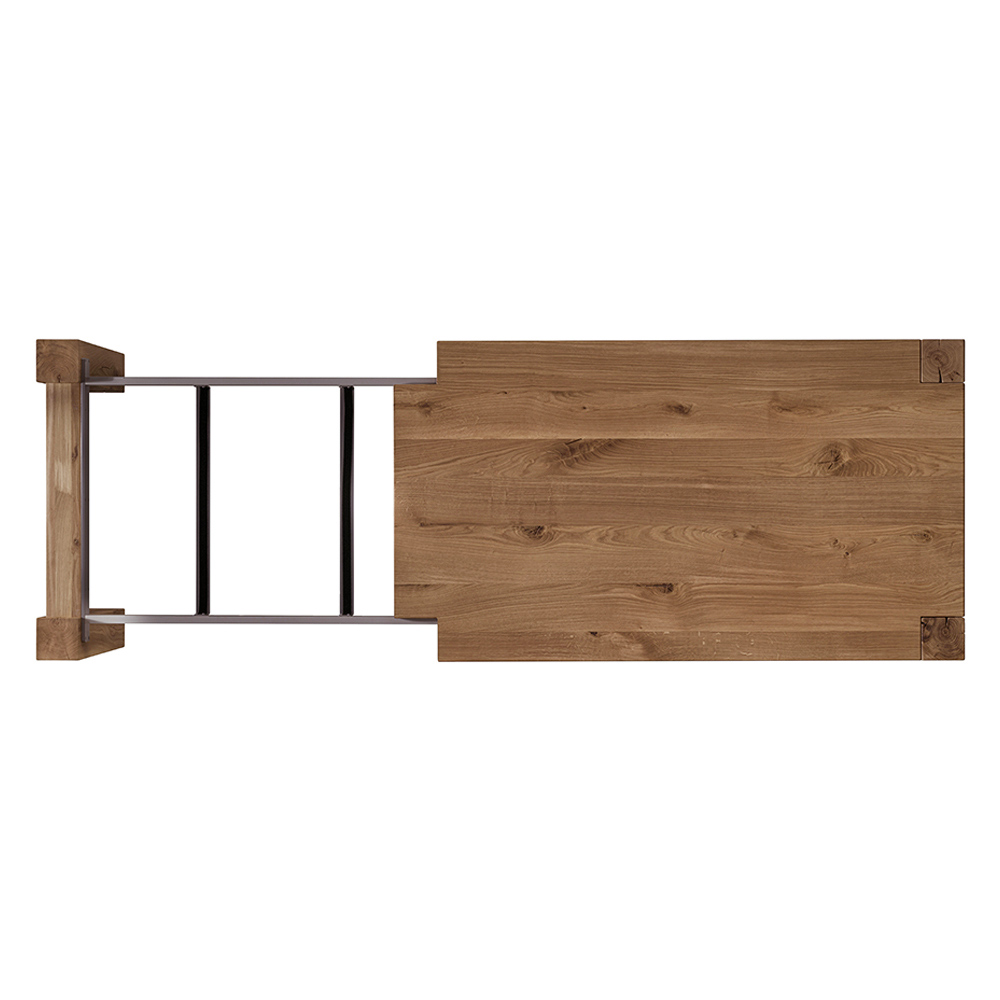 Mesa extensiblecon tapa de listón chapado en roble natural y patas chapadas en laminadode 12x12cm. Se incluyen extensiones .