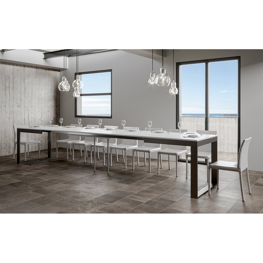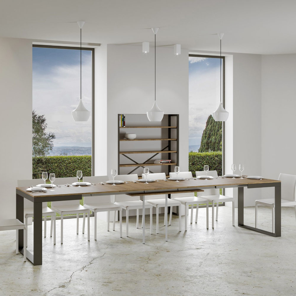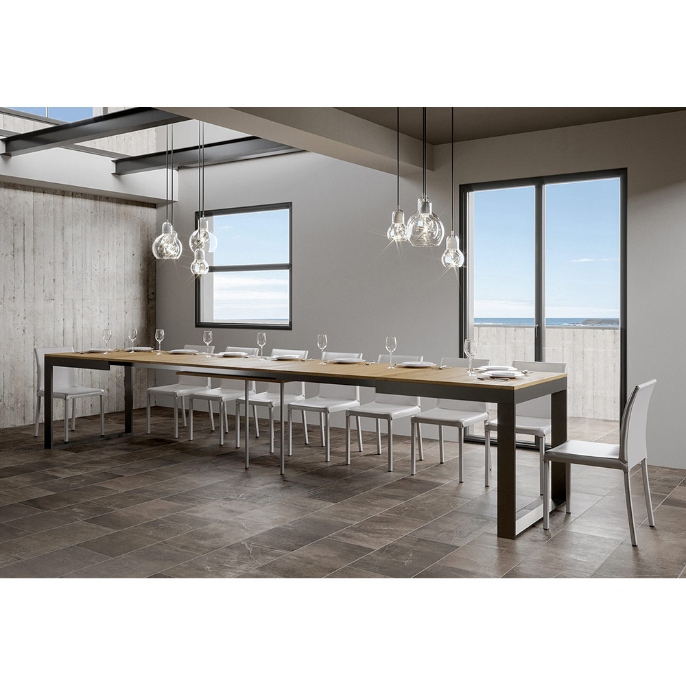 Esta mesa destaca por su versatilidad, gracias al ingenioso mecanismo que permite extenderla fácilmente, transformándola de una cómoda mesa a una generosa mesa capaz de acomodar a múltiples invitados. È es ideal para aquellos a los que les gusta entretener a amigos y familiares o para los que necesitan adaptabilidadà en entornos multifuncionales.