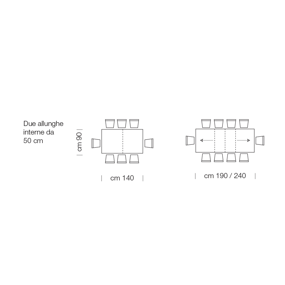 L 90 (140) x P 80 x H 77 cm 8 asientos extensibles con una extensión interna de 50 cm;