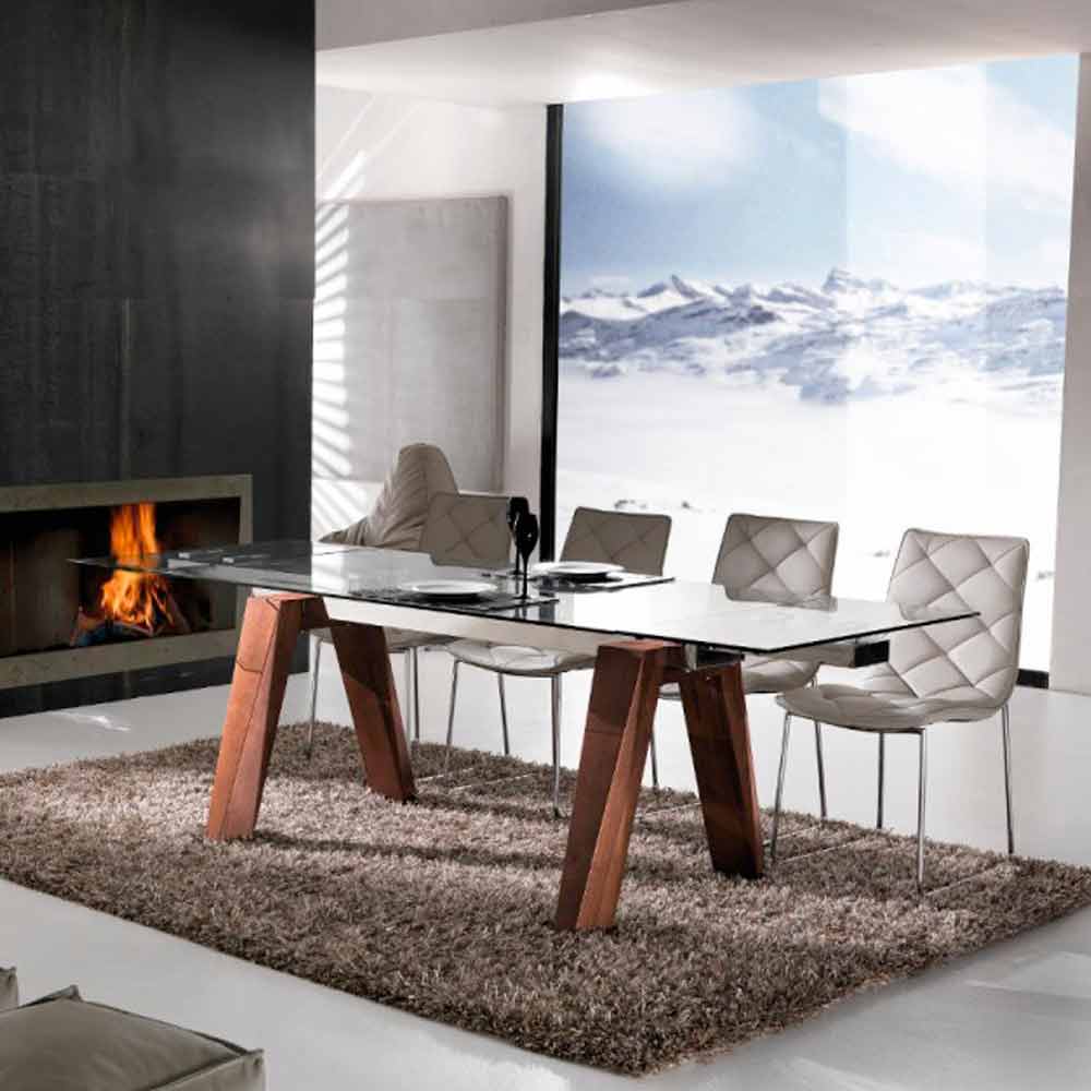 Mesa extensible de madera maciza y vidrio templado modelo Chad