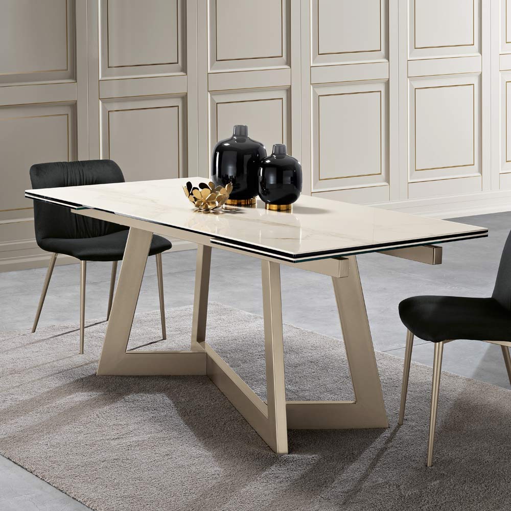Mesa de comedor extensible en vitrocerámica y metal Made in Italy