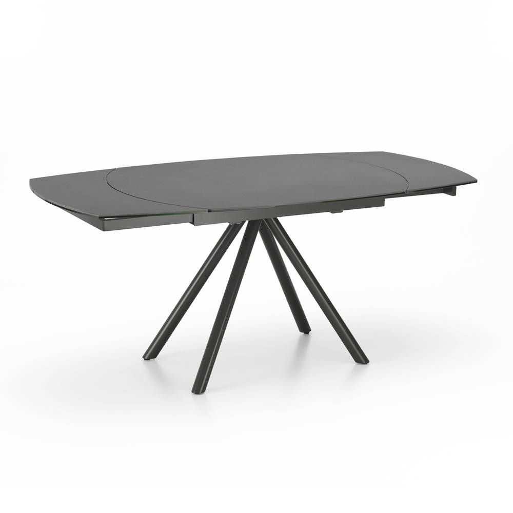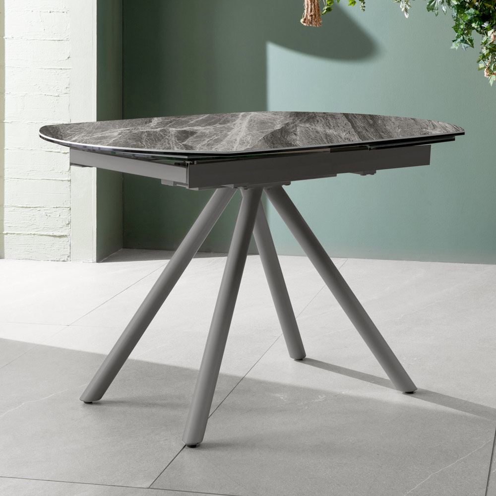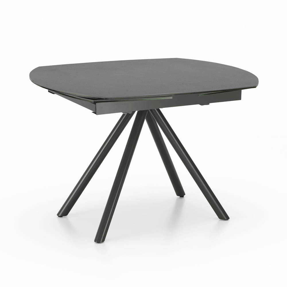Mesa de salón extensible con tapa de cerámica (5 mm) sobre vidrio templado (8 mm), patas de metal pintado antracita y extensiones internas de cerámica sobre vidrio templado. Elegante, práctico y funcional, este artículo combina perfectamente con cualquier estilo, tanto en la cocina como en el salón. Gracias a la posibilidad de ampliarlo es ideal para satisfacer diferentes necesidades de uso para invitar a amigos y familiares. Además, los materiales utilizados para la construcción garantizan calidad y resistencia incluso en el tiempo.