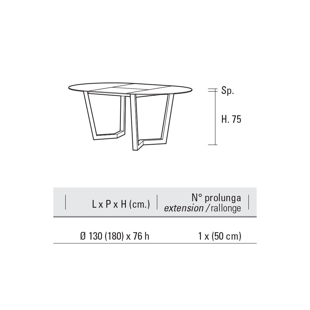 Mesa de comedor redonda con tapa extensible en HPL estratificado Made in Italy.