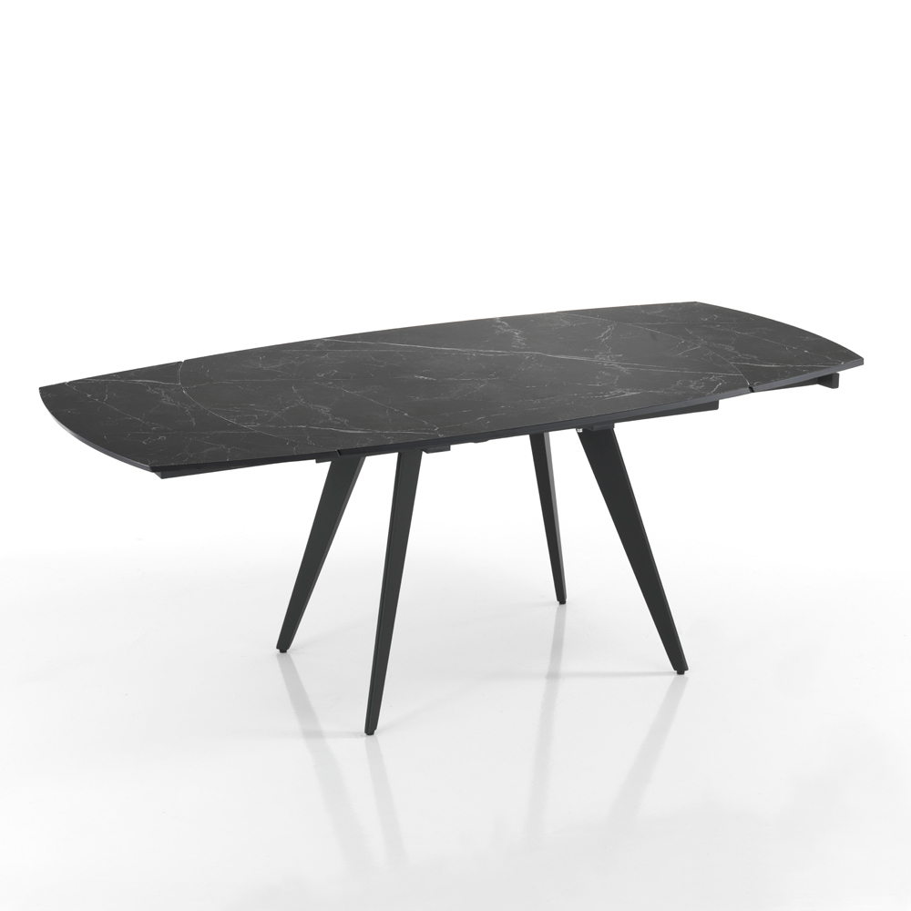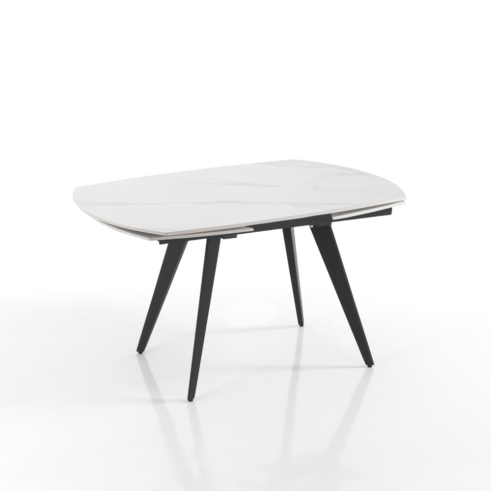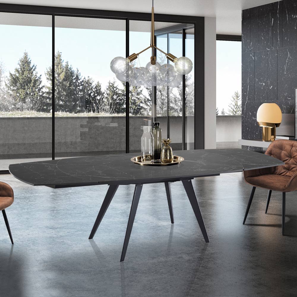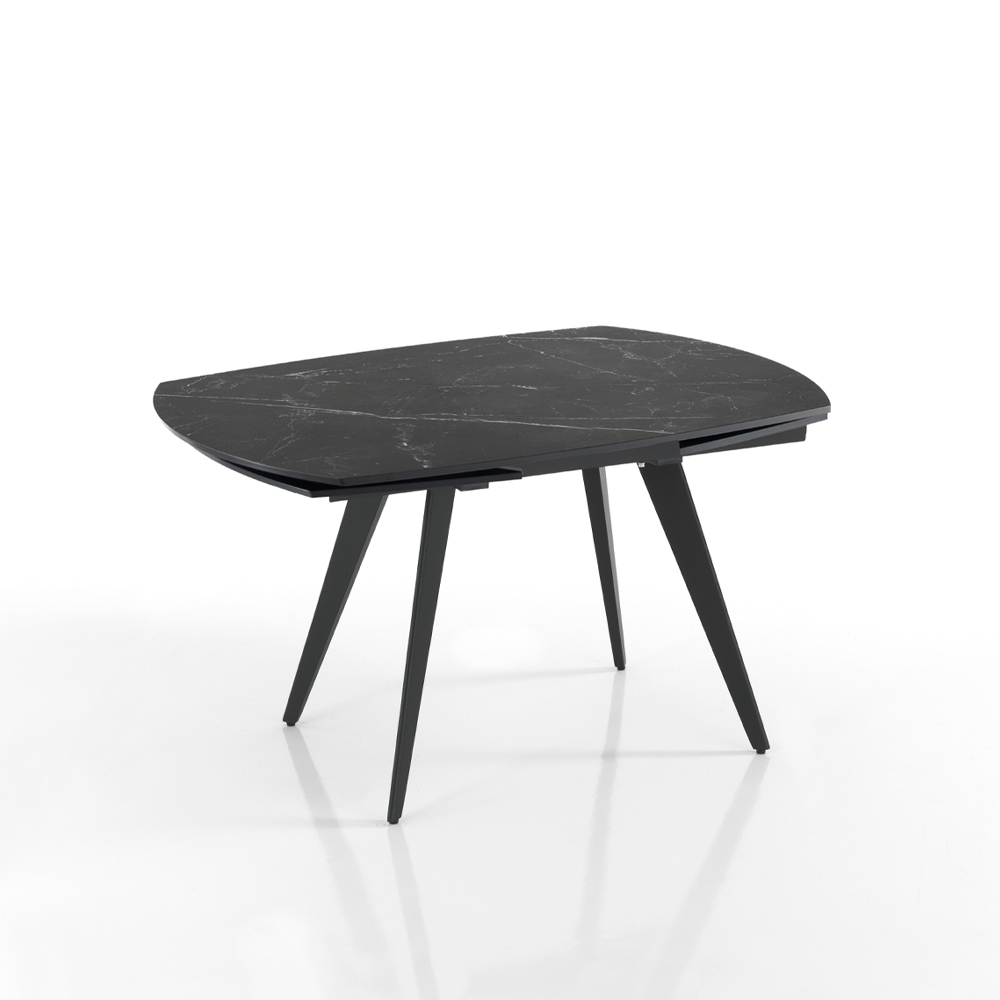 Mesa de interior con tapa fabricada en cerámica de 11 mm de espesor, base de acero pintado, pies regulables y extensiones colocadas debajo del tablero , íntegramente . Este producto es la idea perfecta para todos aquellos que quieran dar un toque de modernidad y frescura al ambiente, ya sea un salón, una cocina o un ambiente contract. Los materiales elegidos para la construcción son de primera calidad para garantizar al cliente una mesa no sólo bonita a la vista sino también funcional y resistente , que desprende toda la artesanía.