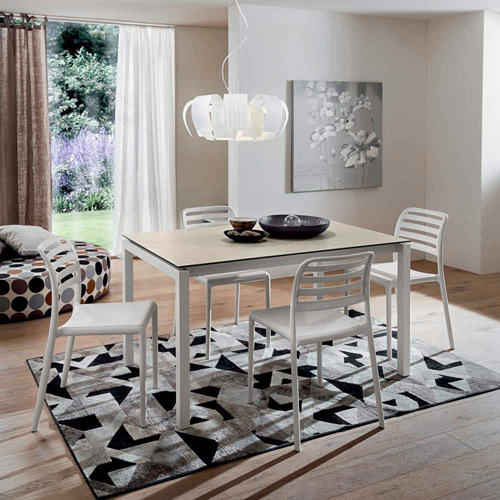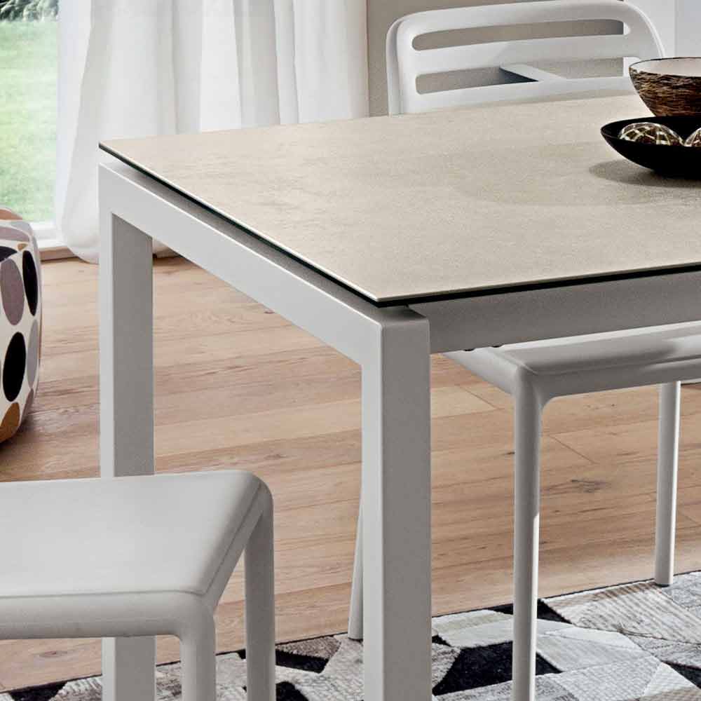 Mesa de cocina con tapa extensible en laminado y metal Made in Italy.