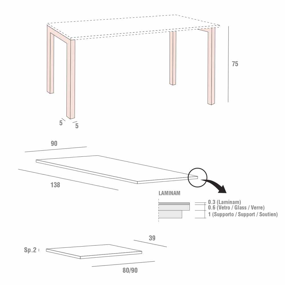 Subrayando la estética elegante y el valor de esta mesa está la tapa de laminam, una revolucionaria superficie cerámica creada a partir de una mezcla de gres porcelánico que permite obtener una tapa resistente a disolventes, desinfectantes y detergentes, así como a arañazos y abrasiones profundas. Además, es especialmente sencillo y rápido de limpiar, consiguiendo mantener siempre inalteradas sus peculiares características.
