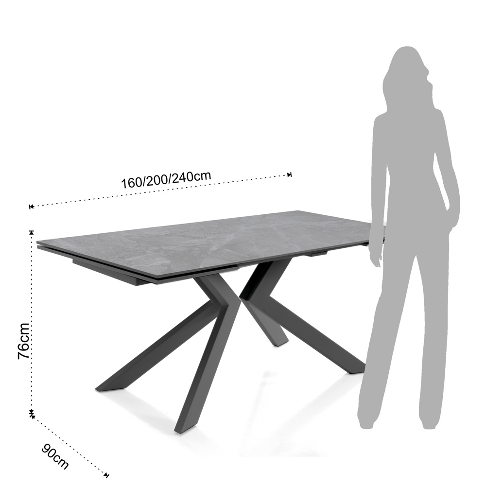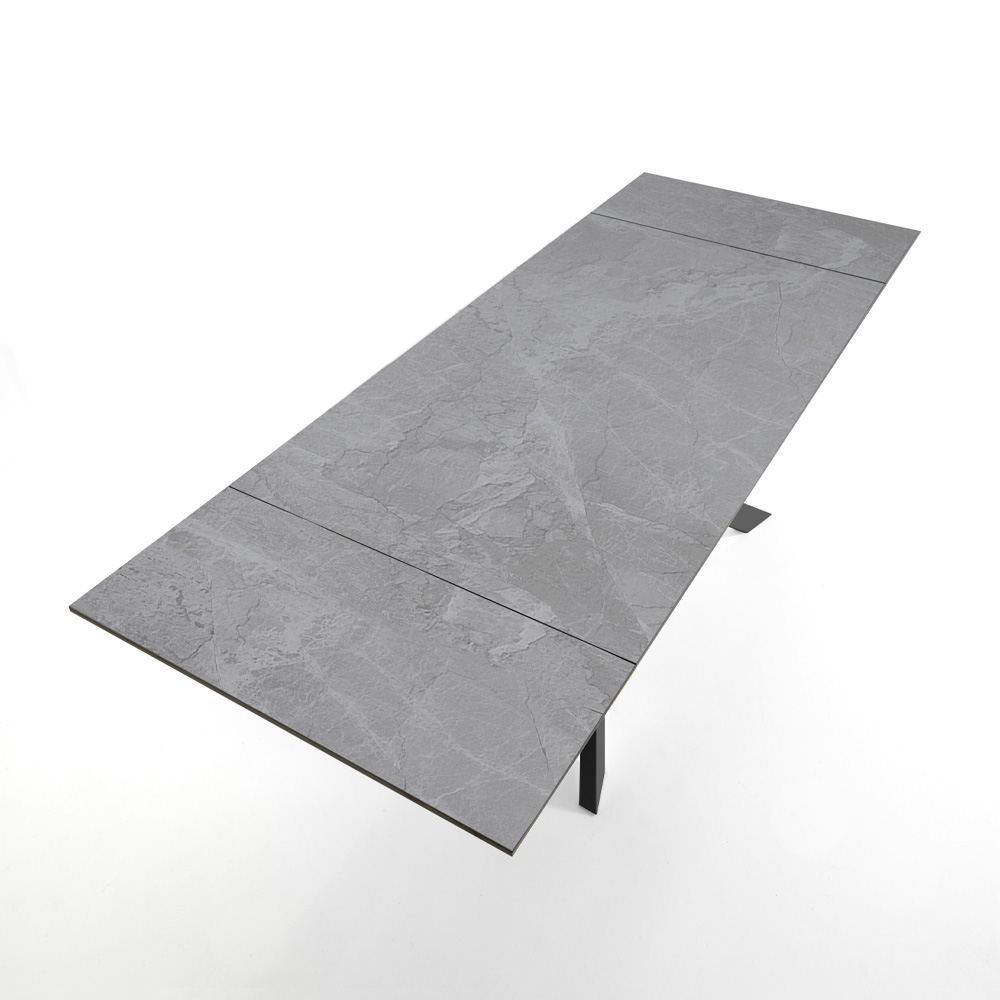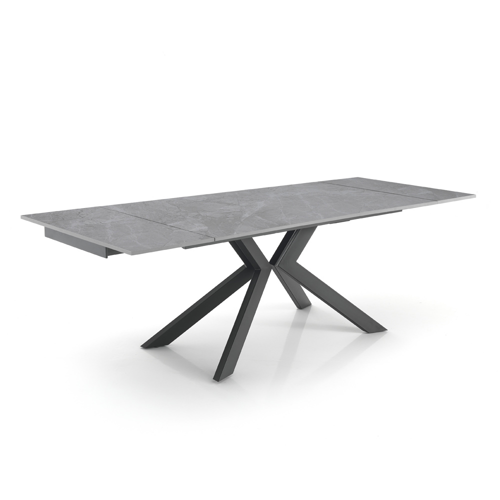 Mesa de interior extensible con tapa de cerámica acabado mármol gris mate esp. 12 mm y base realizada en metal pintado gris mate, íntegramente .