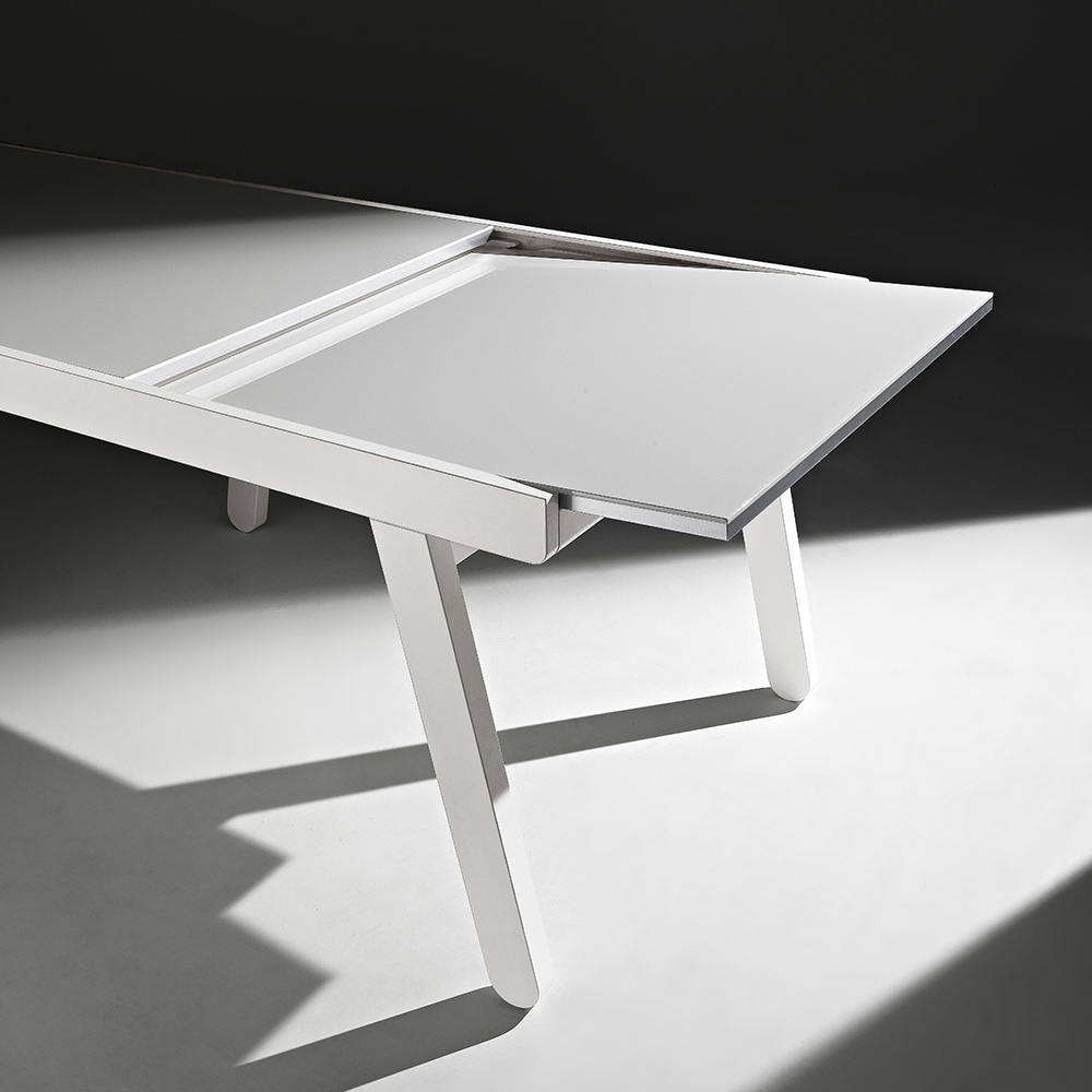 Mesa de cocina con tapa extensible hasta 240 cm en madera lacada Made in Italy.