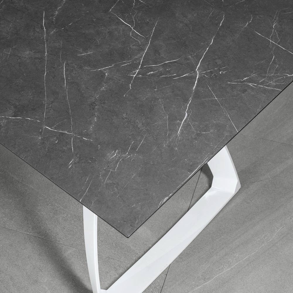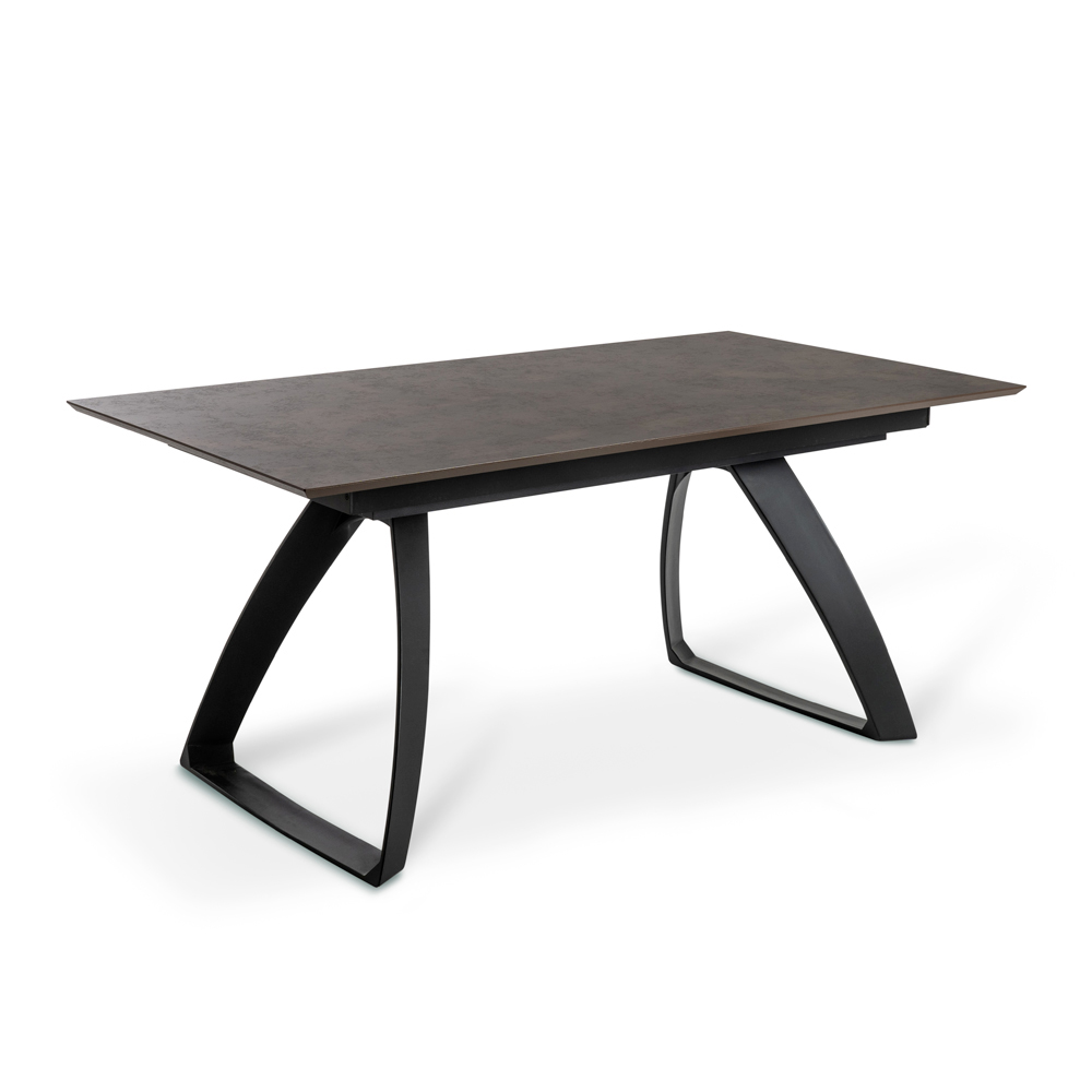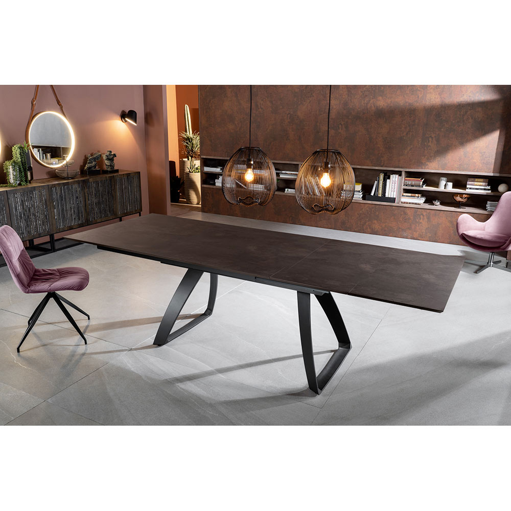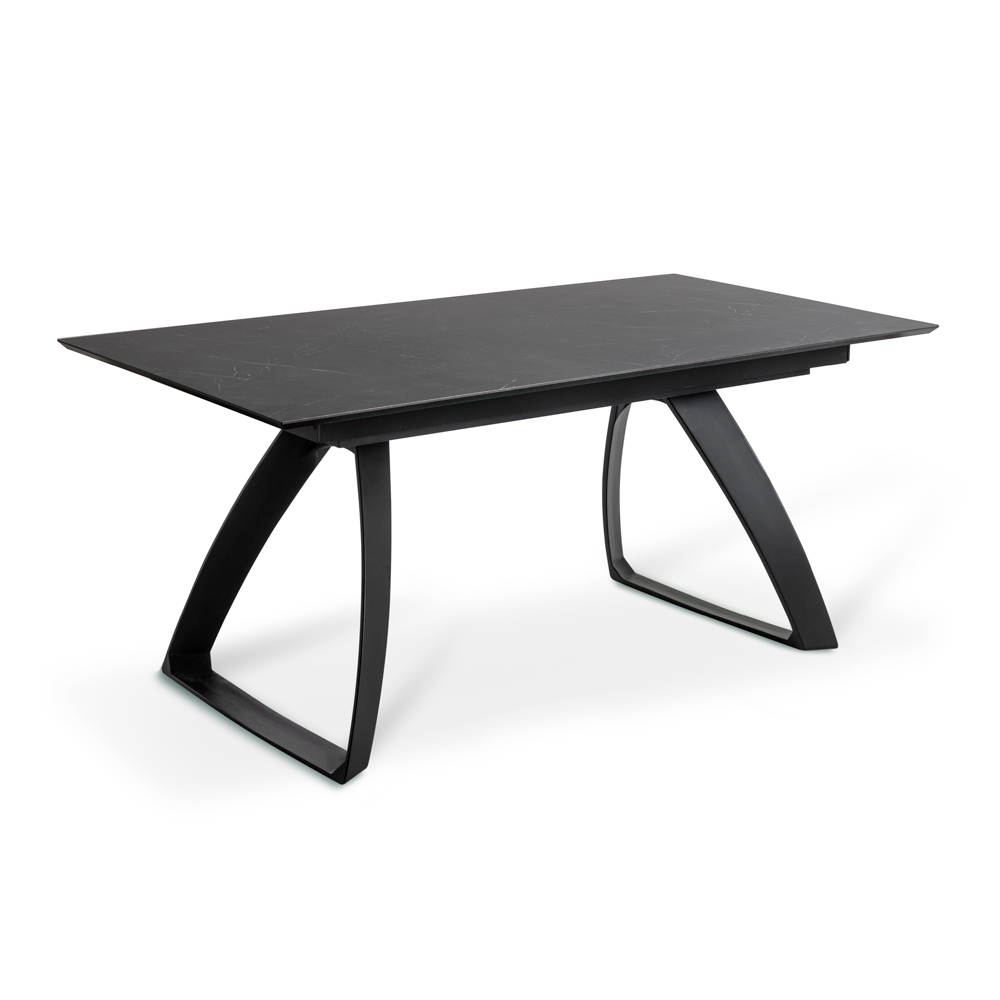 Mesa de salón extensible con tapa de HPL sobre MDF , patas de aluminio pintado blanco o negroy extensiones internas en HPL sobre MDF.