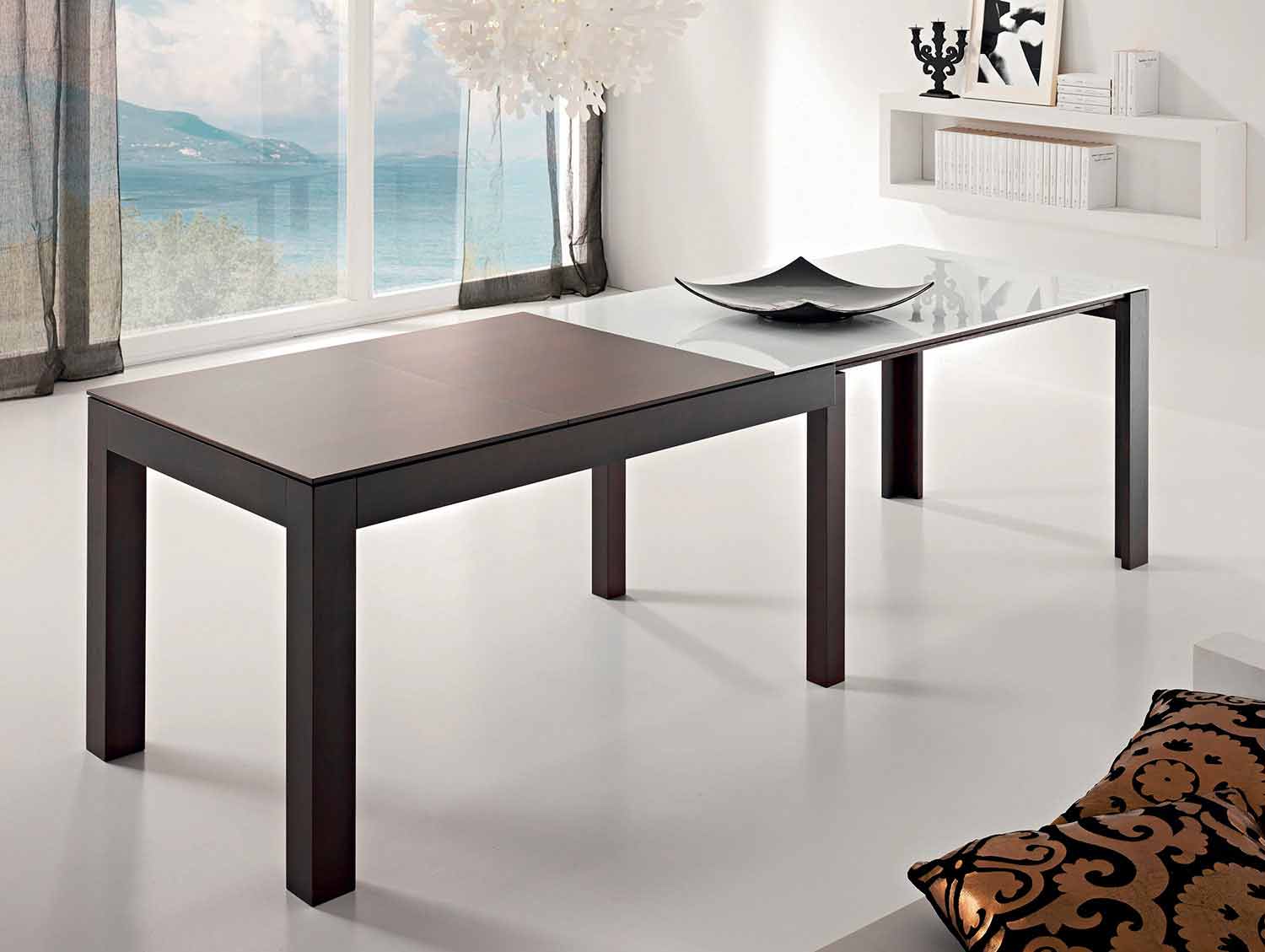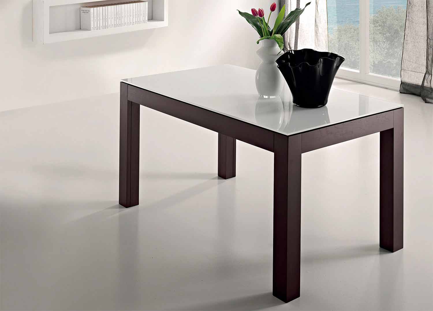 Al ser un producto hecho a mano, es posible personalizarlo eligiendo entre los diversos acabados de vidrio para la parte superior y varios acabados de madera para la base y las extensiones. Para más información contáctenos a través del formulario apropiado "Solicitar información".