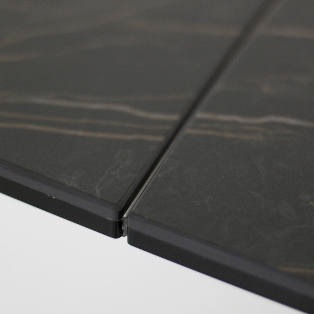 Mesa de salón extensible tipo barril con extensiones integradas, tapa de cerámica , canto recto , base chapada en nogal canaletto y pies regulables. Gracias a la forma de la base y al acabado del tablero, la mesa es capaz de dar un toque de movimiento y elegancia a cualquier ambiente diario y contract. Los materiales garantizan funcionalidad y practicidad para tener un producto no sólo visualmente muy bonito sino también utilizable en cualquier ocasión.