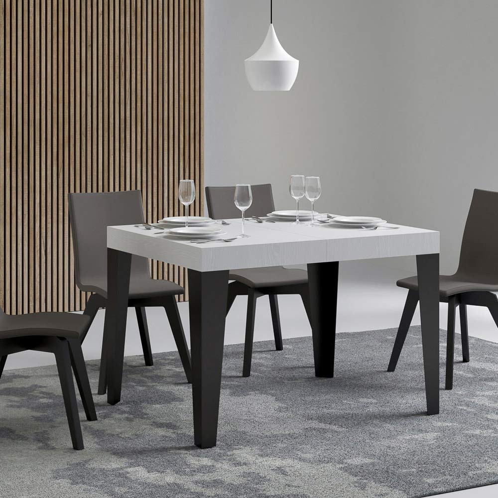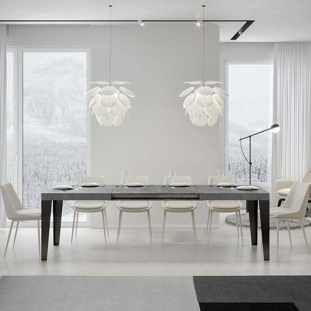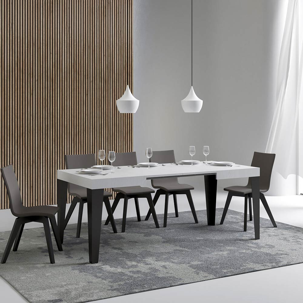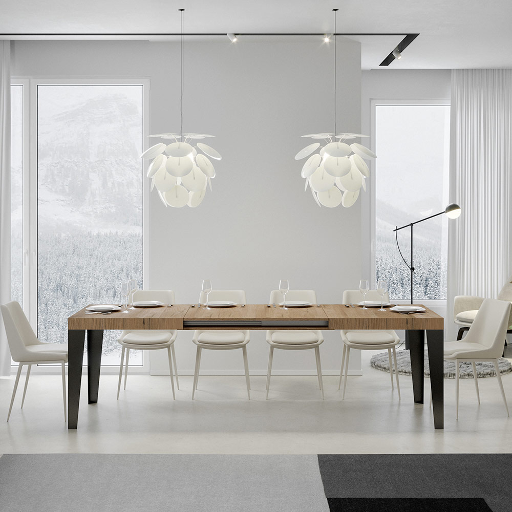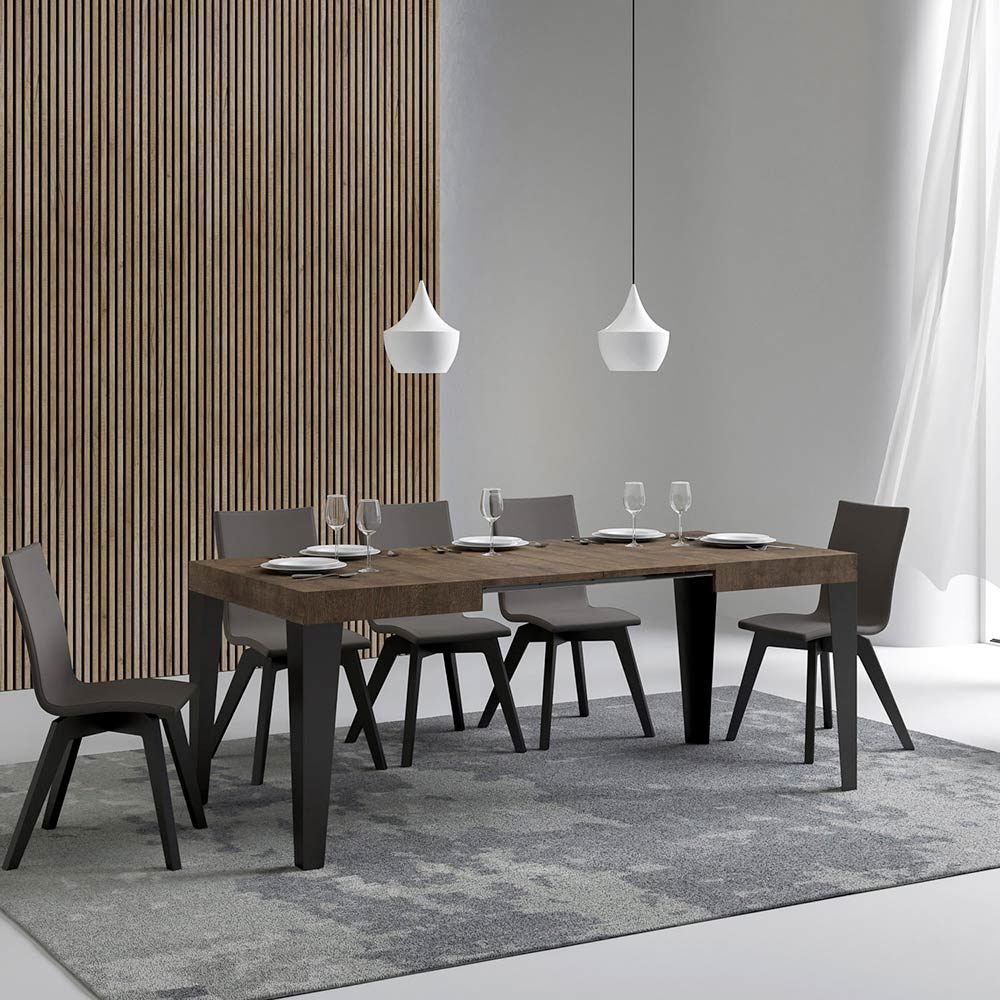 Mesa de comedor extensible fabricada con un tablero de micropartículas de madera y patas de hierro pintado antracita,totalmente Made in Italy. .