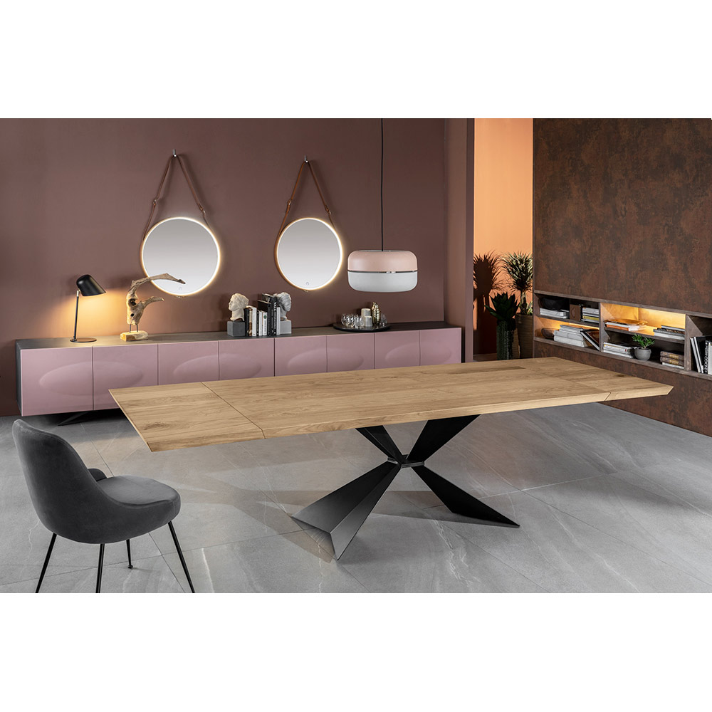 Esta mesa, gracias a la forma de sus patas, aporta a la estancia un toque moderno y elegante que combina a la perfección con la referencia clásica de la madera, satisfaciendo así las diferentes necesidades de estilo y diseño. Es una mesa que se convierte en protagonista del salón, ya sea cocina o salón, brindando al cliente momentos de convivencia únicos e inolvidables.