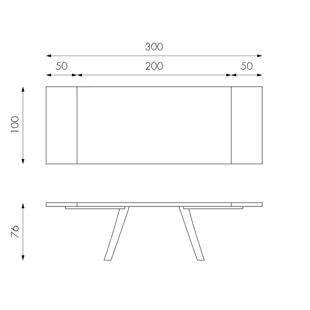 Largo: 200/300 cm x Fondo: 100 cm x Alto: 76 cm