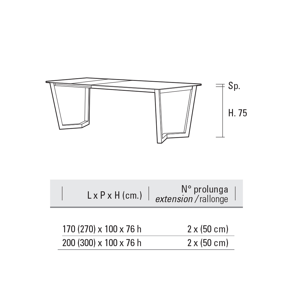 - L 200/300 x P 100 x AL 76 cm.