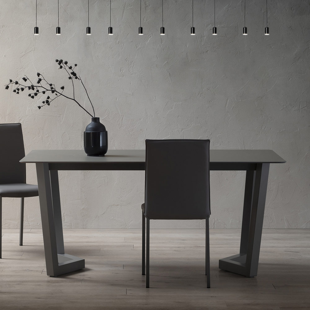 Mesa de comedor extensible de fenix estratificado con base de metal Made in Italy.
