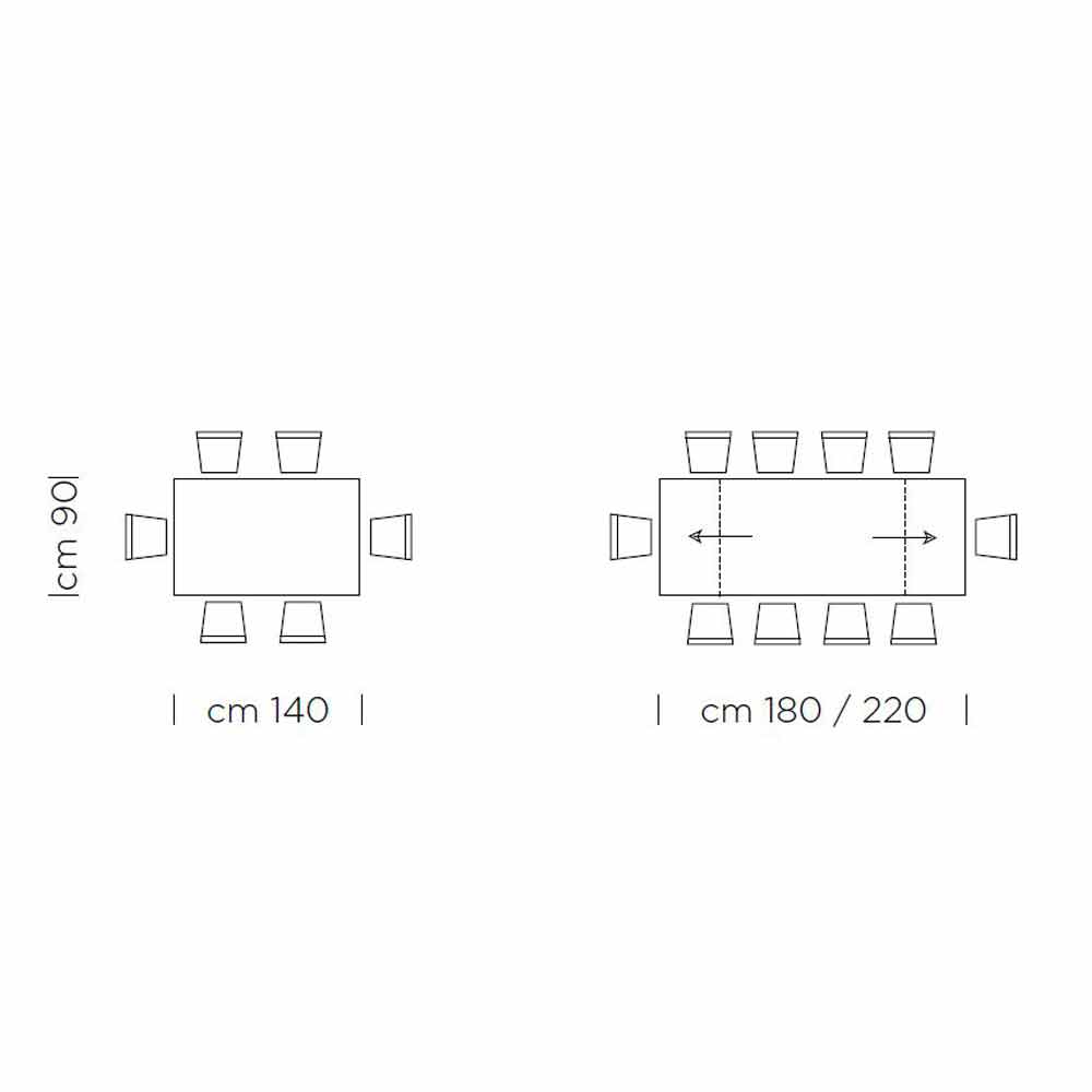 • L 140/220 x P 90 x H 75,5 10 asientos (2 extensiones de 40 cm);