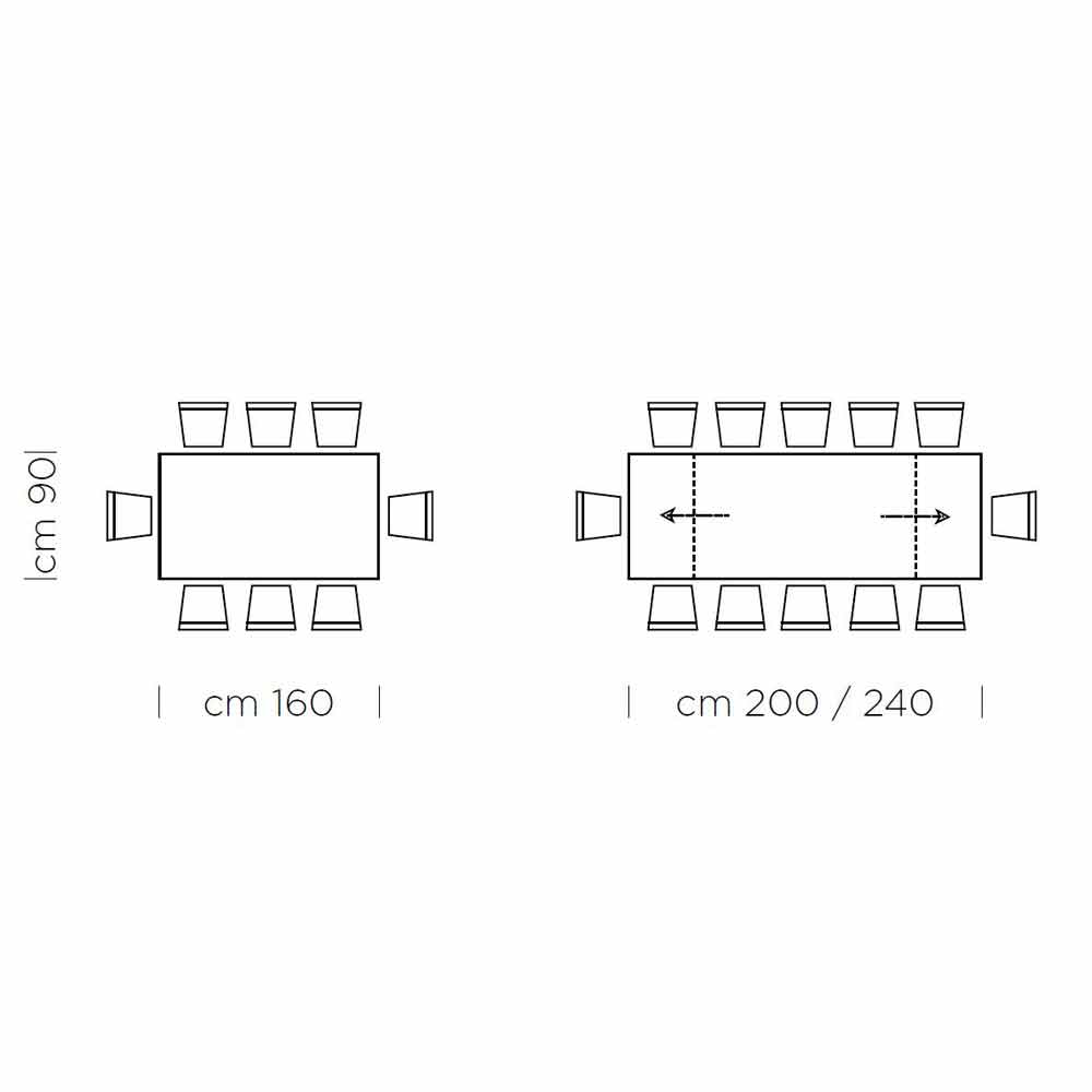 • L 160/240 x P 90 x H 75,5 12 asientos (2 extensiones de 40 cm)