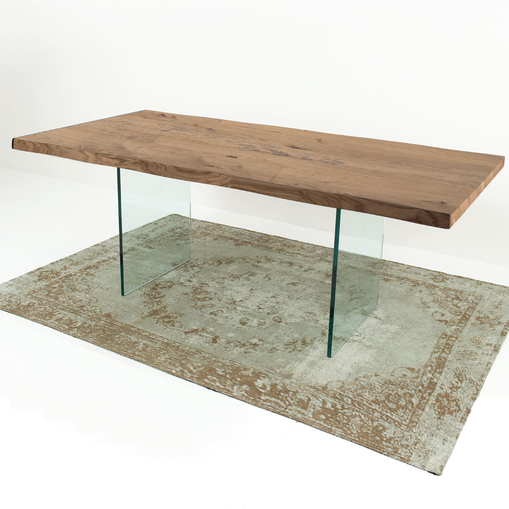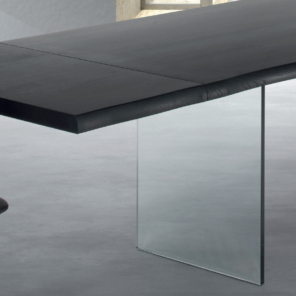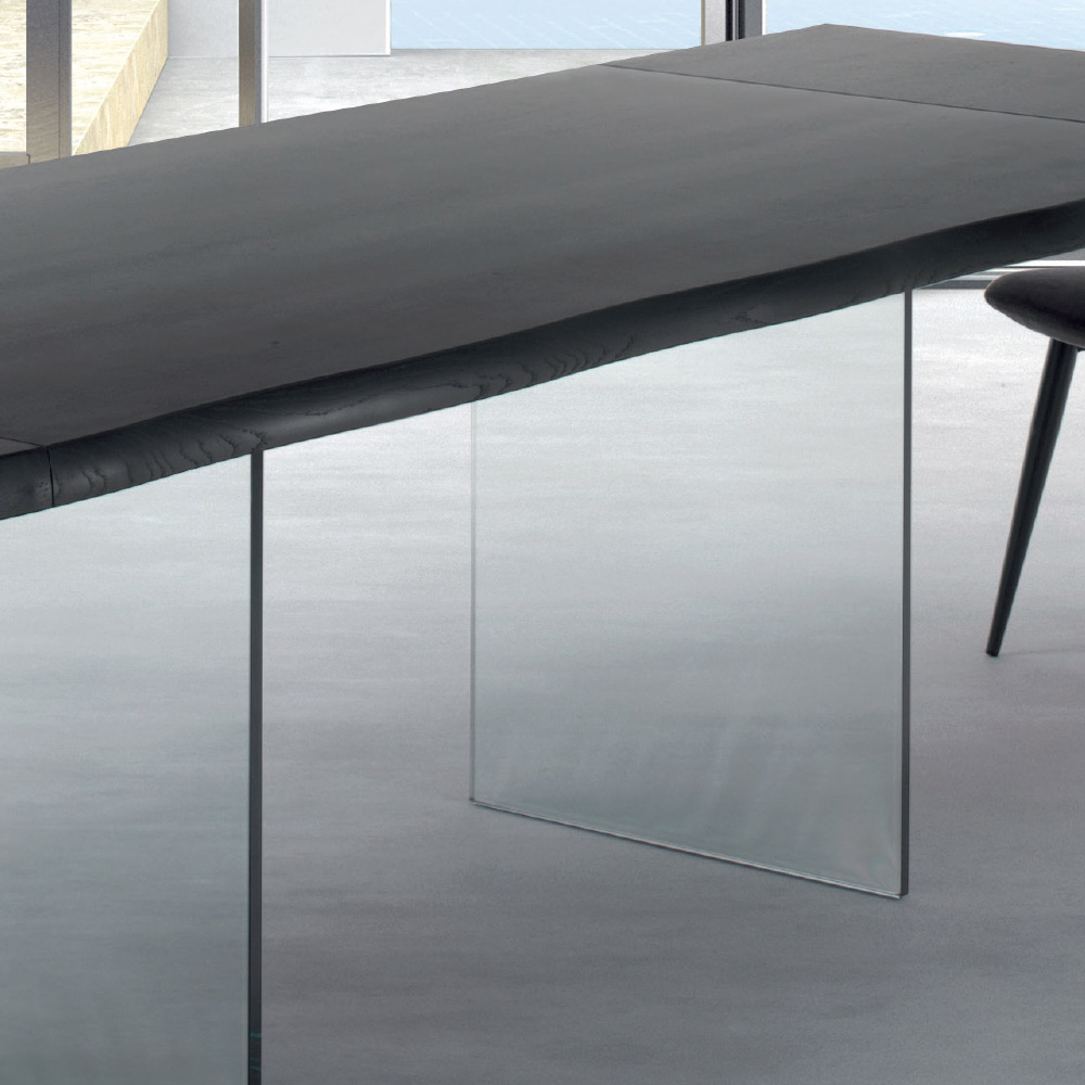 La moderna mesa extensible Strappo se caracteriza por líneas sólidas y elegantes que la convierten en la verdadera protagonista de todos tus ambientes. Hecho a mano en Italia con materiales de excelente calidad y 100% made in Italy. Compuesto por tapa de madera contrachapada con canto descortezado irregular.y una base de cristal transparente.