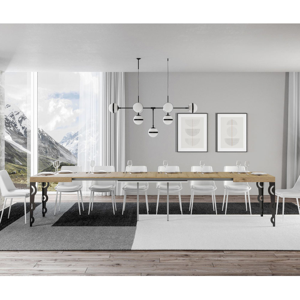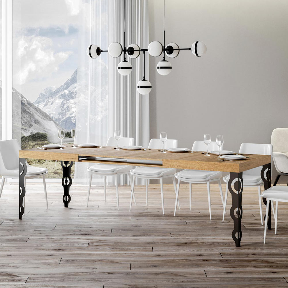 Esta mesa extensible combina el antiguo encanto del diseño ornamental con la funcionalidad moderna. Las patas de hierro talladas presentan intrincados patrones barrocos, un detalle que sin duda atraerá todas las miradas.