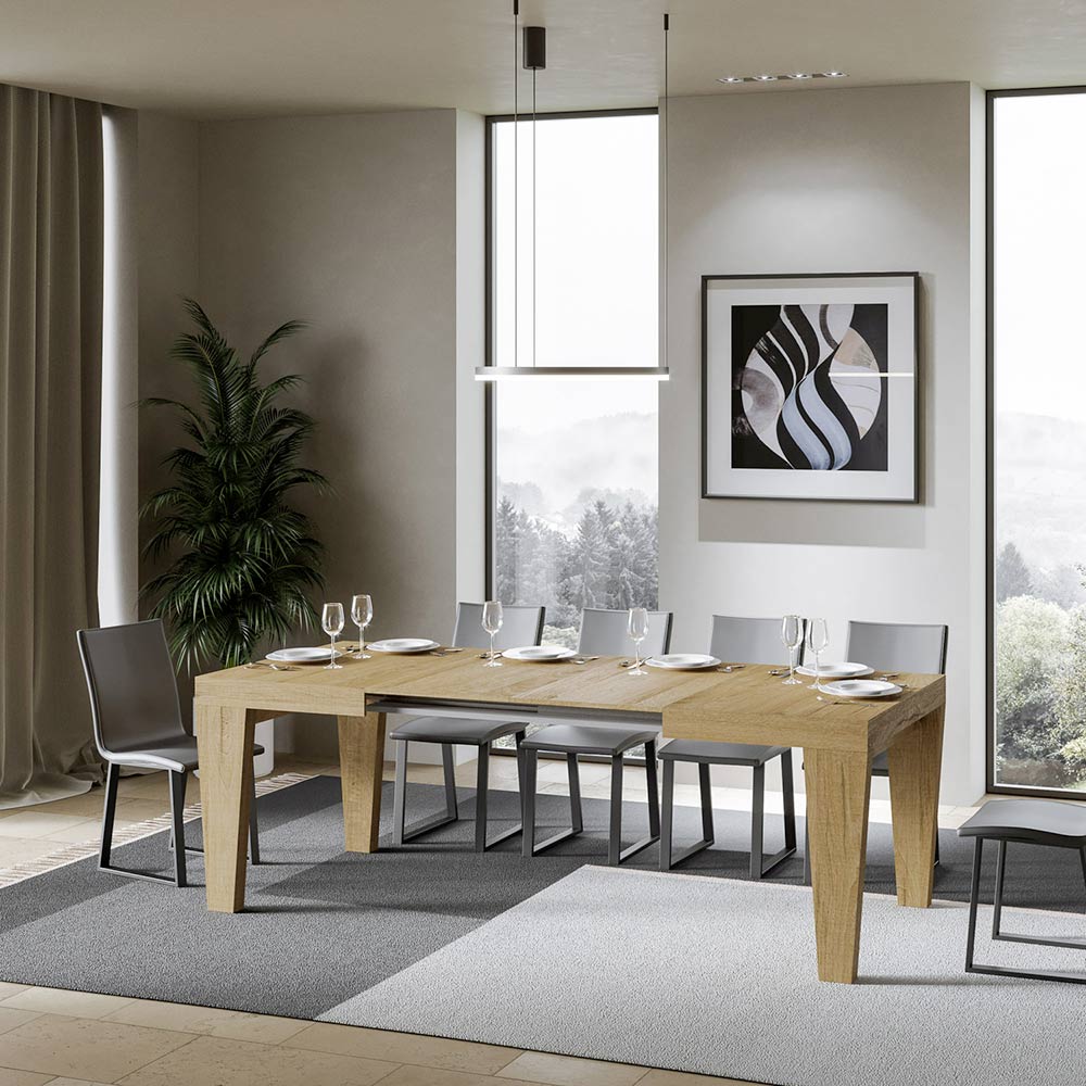 Mesa de comedor extensible fabricada con micropartículas de madera, totalmente Made in Italy.