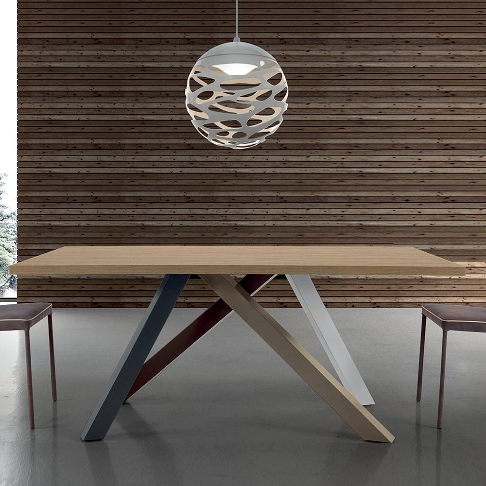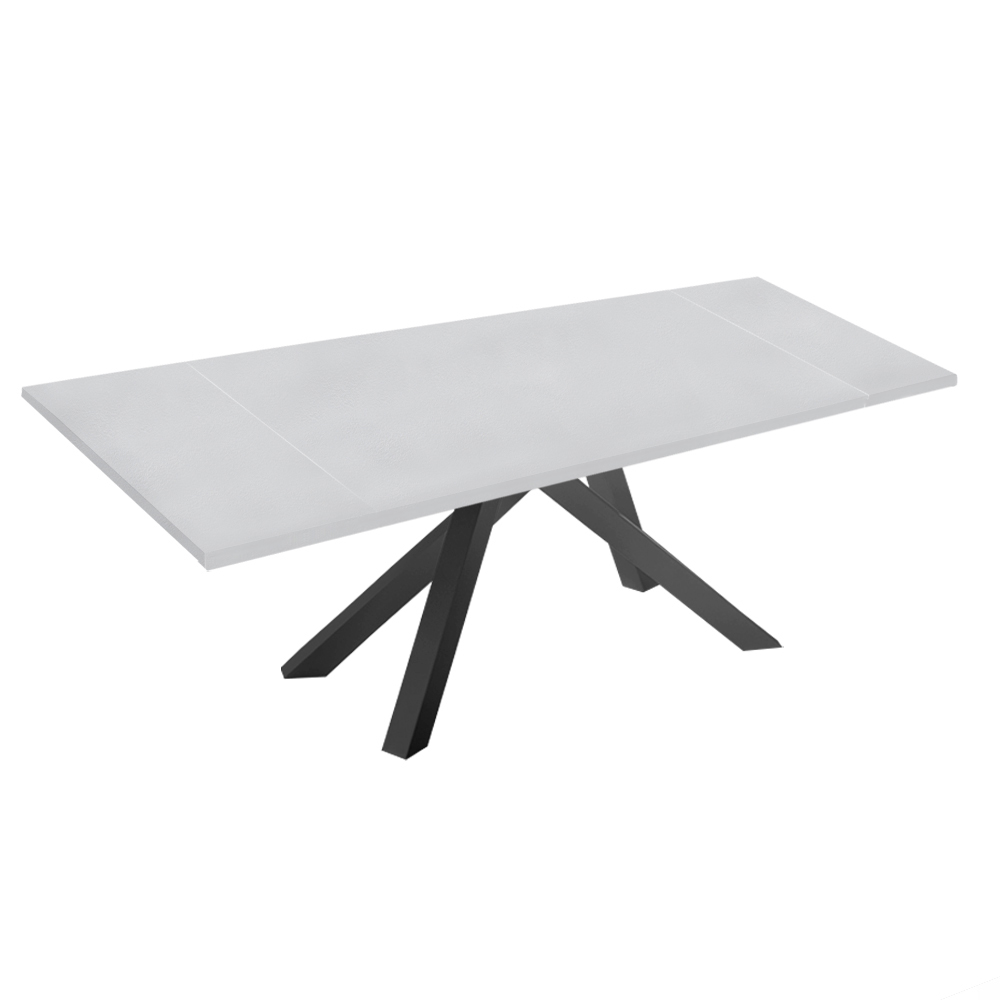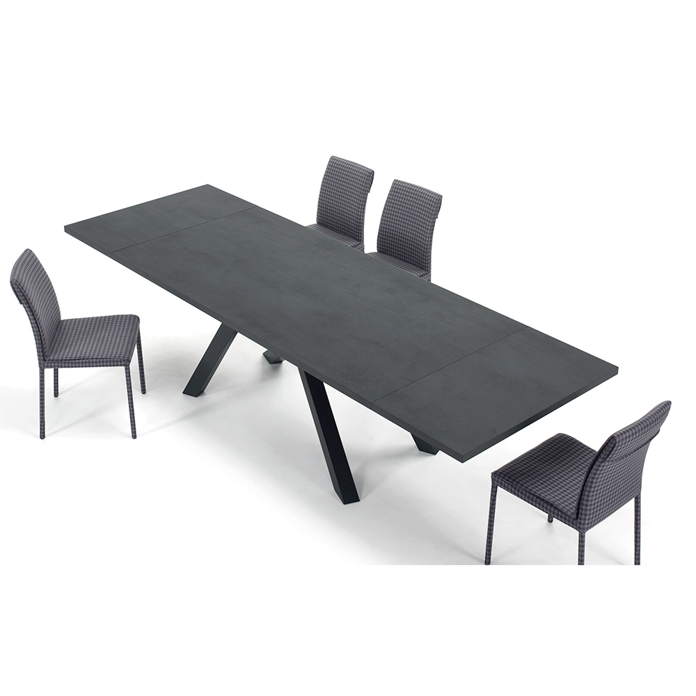 Mesa de comedor extensible hasta 300 cm con tapa de madera laminada y base de acero fabricada en Italia.